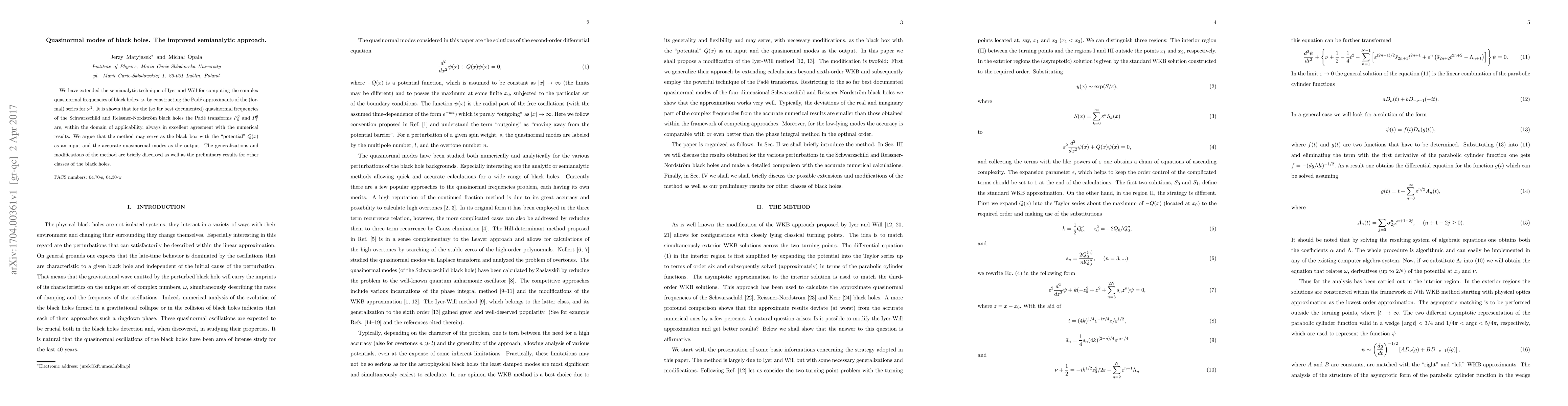 We have extended the semianalytic technique of Iyer and Will for computing the complex quasinormal frequencies of black holes, $\omega,$ by constructing the Pad\'e approximants of the (formal) series for $\omega^{2}$. It is shown that for the (so far best documented) quasinormal frequencies of the Schwarzschild and Reissner-Nordstr\"om black holes the Pad\'e transforms $P_{6}^{6}$ and $P_{7}^{6}$ are, within the domain of applicability, always in excellent agreement with the numerical results. We argue that the method may serve as the black box with the "potential" $Q(x)$ as an input and the accurate quasinormal modes as the output. The generalizations and modifications of the method are briefly discussed as well as the preliminary results for other classes of the black holes.