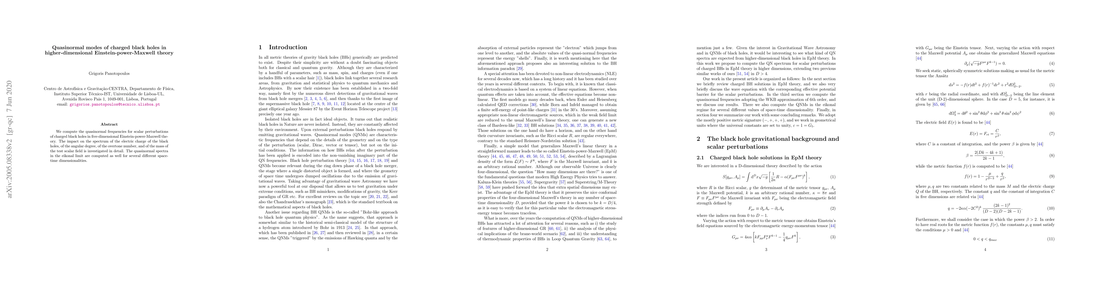 This paper calculates quasinormal frequencies for scalar perturbations in charged five-dimensional black holes within Einstein-power-Maxwell theory, analyzing the effects of black hole charge, angular degree, overtone number, and scalar field mass. It also explores quasinormal spectra in the eikonal limit across varying spacetime dimensions.
