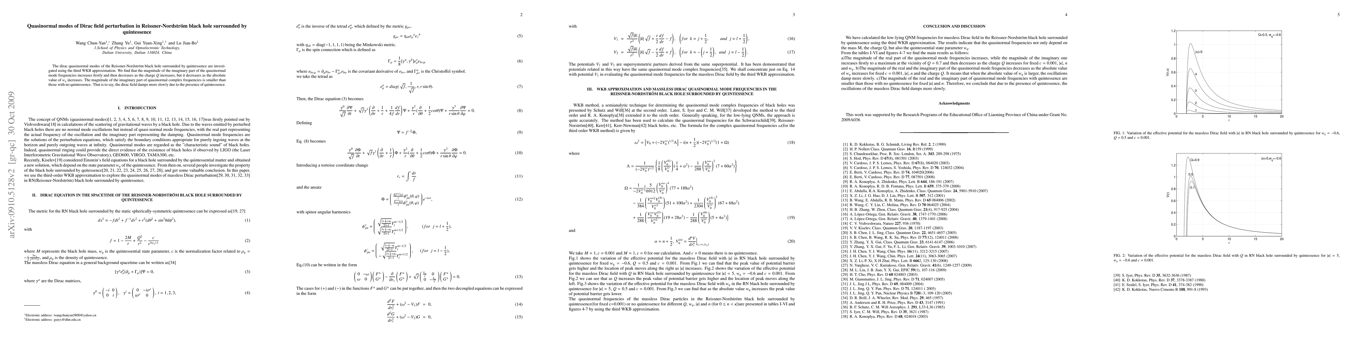The dirac quasinormal modes of the Reissner-Nordstr\"om black hole surrounded by quintessence are investigated using the third WKB approximation. We find that the magnitude of the imaginary part of the quasinormal mode frequencies increases firstly and then decreases as the charge $Q$ increases, but it decreases as the absolute value of $w_{q}$ increases. The magnitude of the imaginary part of quasinormal complex frequencies is smaller than those with no quintessence. That is to say, the dirac field damps more slowly due to the presence of quintessence.