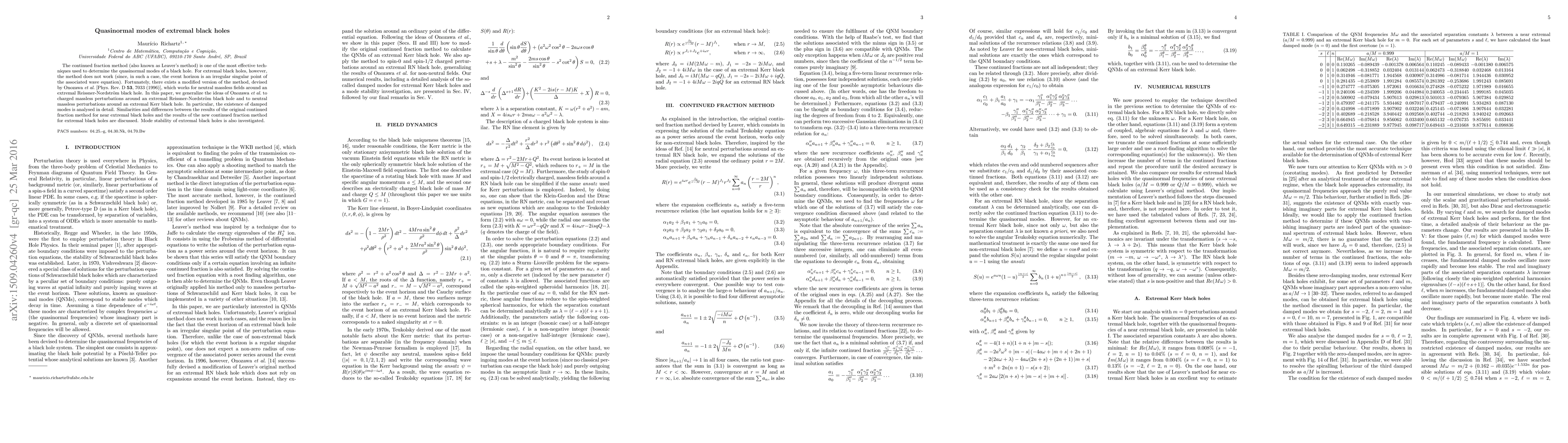 This paper generalizes a modified continued fraction method to calculate quasinormal modes for charged and neutral perturbations around extremal Reissner-Nordstrom and Kerr black holes, extending previous work by Onozawa et al. and comparing results for near-extremal versus extremal black holes.