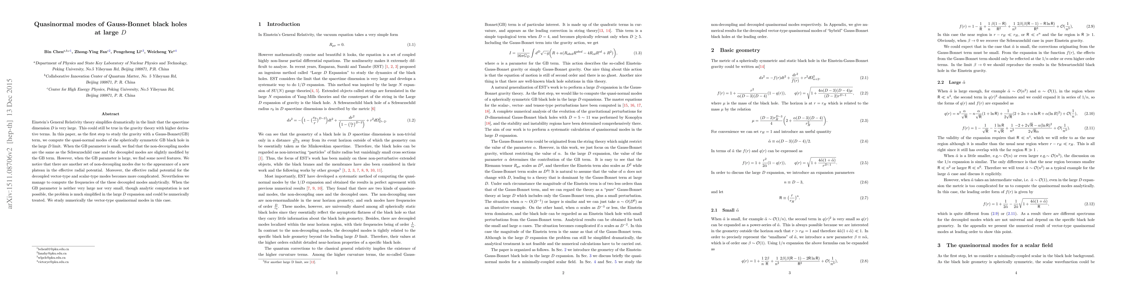 The paper presents a detailed analysis of quasinormal modes for Gauss-Bonnet black holes in the large D limit, identifying distinct behaviors for small and large GB parameters, and providing analytical expressions for decoupled mode frequencies in the large GB parameter regime.