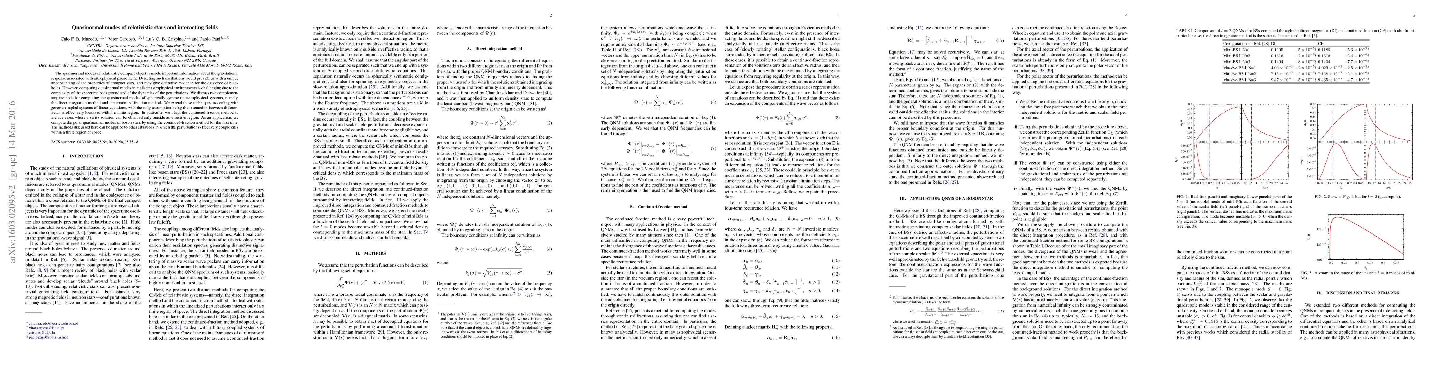 This paper discusses two methods for computing quasinormal modes of relativistic compact objects, focusing on the direct integration and continued-fraction methods. It applies these techniques to compute the polar quasinormal modes of boson stars, demonstrating their utility in astrophysical systems with localized interactions.