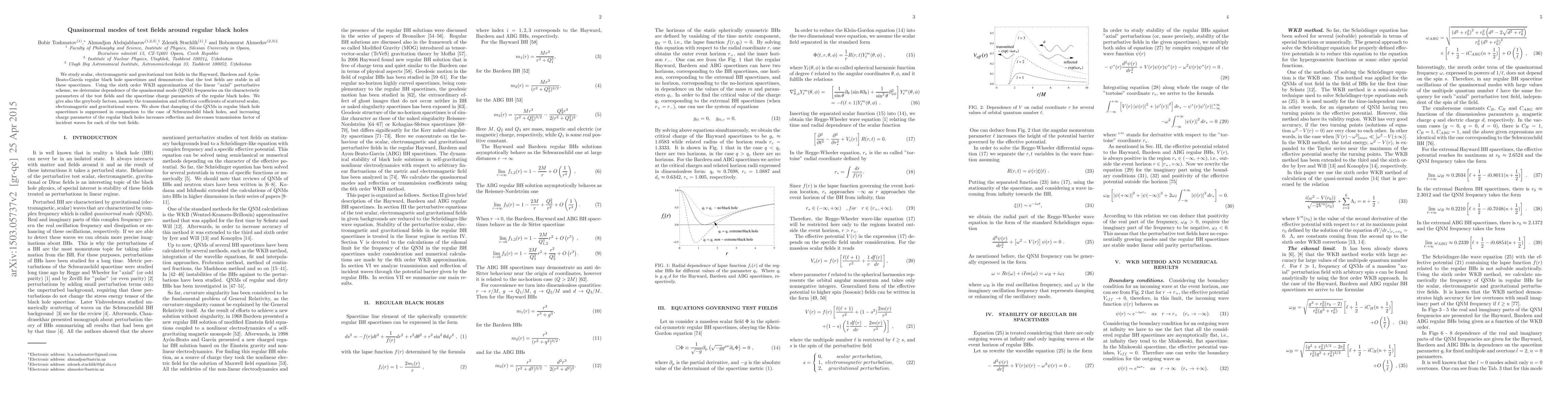 This paper investigates the quasinormal modes (QNMs) of scalar, electromagnetic, and gravitational test fields around three types of regular black holes, finding stability and determining QNM frequencies using the sixth-order WKB approximation. It reveals that QNM damping is less pronounced in regular black holes compared to Schwarzschild black holes, and higher charge parameters increase reflection while decreasing transmission of incident waves.