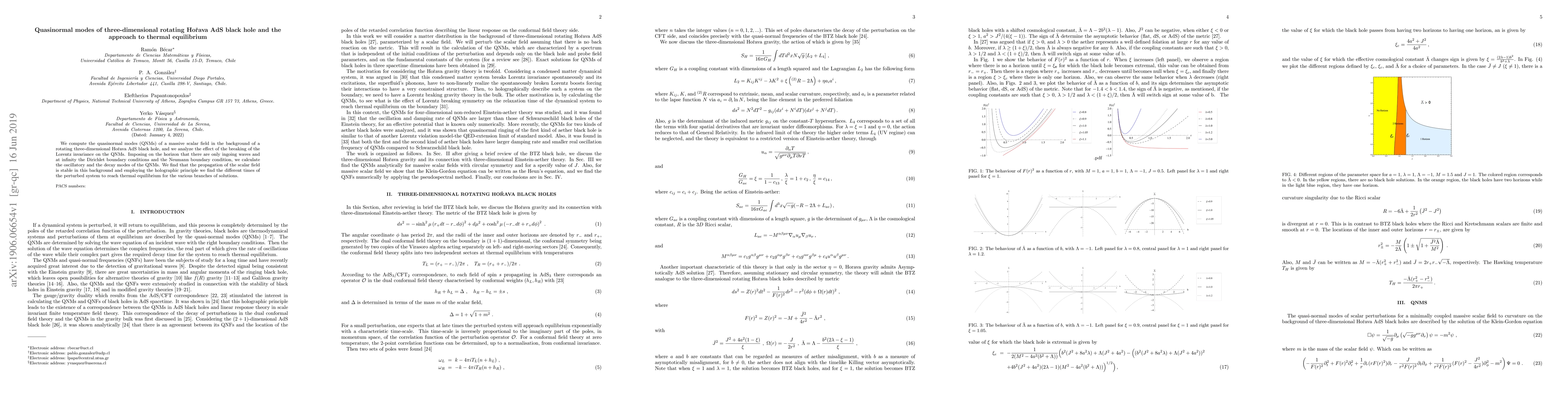 We compute the quasinormal modes (QNMs) of a massive scalar field in the background of a rotating three-dimensional Ho\v{r}ava AdS black hole, and we analyze the effect of the breaking of the Lorentz invariance on the QNMs. Imposing on the horizon that there are only ingoing waves and at infinity the Dirichlet boundary conditions and the Neumann boundary condition, we calculate the oscillatory and the decay modes of the QNMs. We find that the propagation of the scalar field is stable in this background and employing the holographic principle we find the different times of the perturbed system to reach thermal equilibrium for the various branches of solutions.