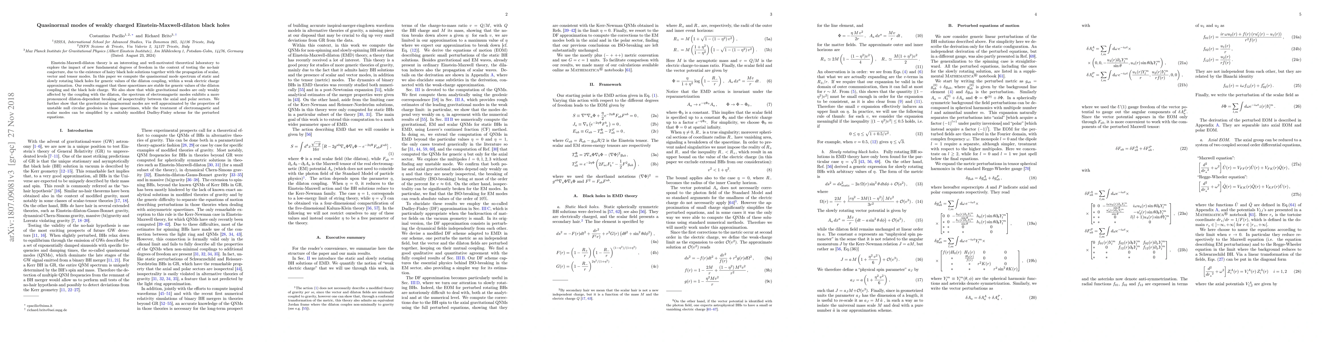 This paper calculates the quasinormal modes of weakly charged Einstein-Maxwell-dilaton black holes, revealing that these black holes are stable for typical dilaton couplings and charges. It shows that gravitational modes are minimally affected by dilaton coupling, while electromagnetic modes display significant dilaton-induced variations.