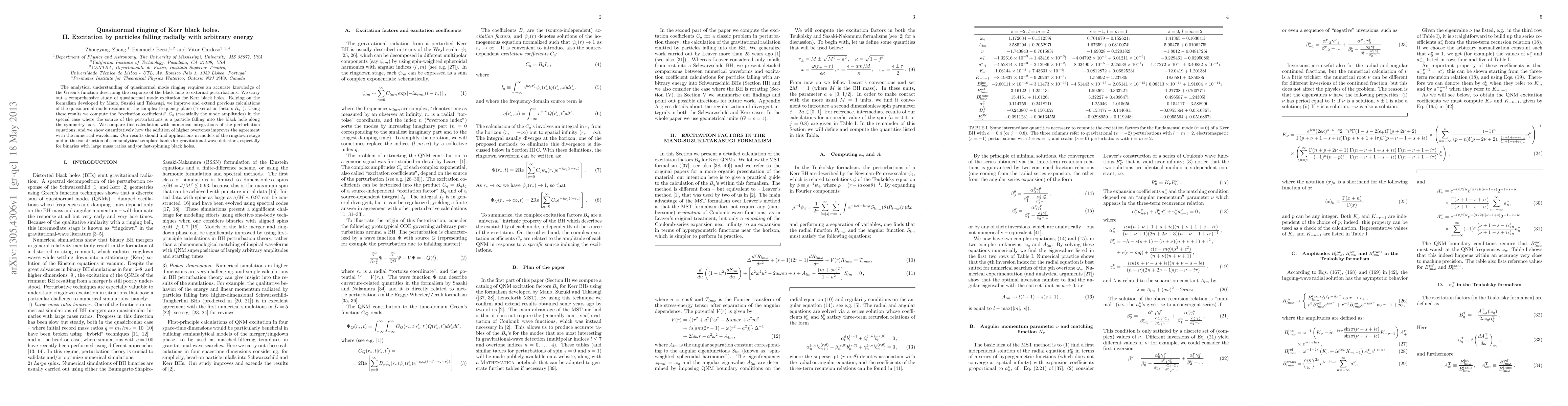 This paper investigates the quasinormal mode excitation of Kerr black holes by particles falling radially with arbitrary energy. It improves calculations of quasinormal mode residues and computes mode amplitudes, showing enhanced agreement with numerical waveforms when higher overtones are included, which is crucial for gravitational-wave detection models.
