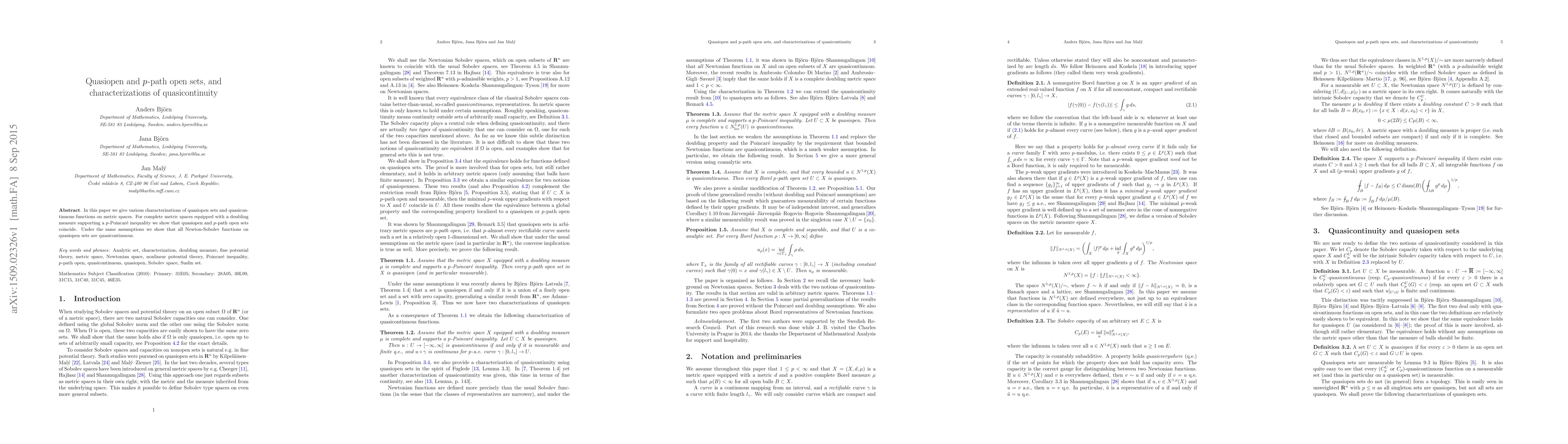 This paper characterizes quasiopen sets and quasicontinuous functions in metric spaces, demonstrating that quasiopen and p-path open sets coincide in complete metric spaces with a doubling measure and a p-Poincaré inequality. It also proves that all Newton-Sobolev functions on quasiopen sets are quasicontinuous under these conditions.