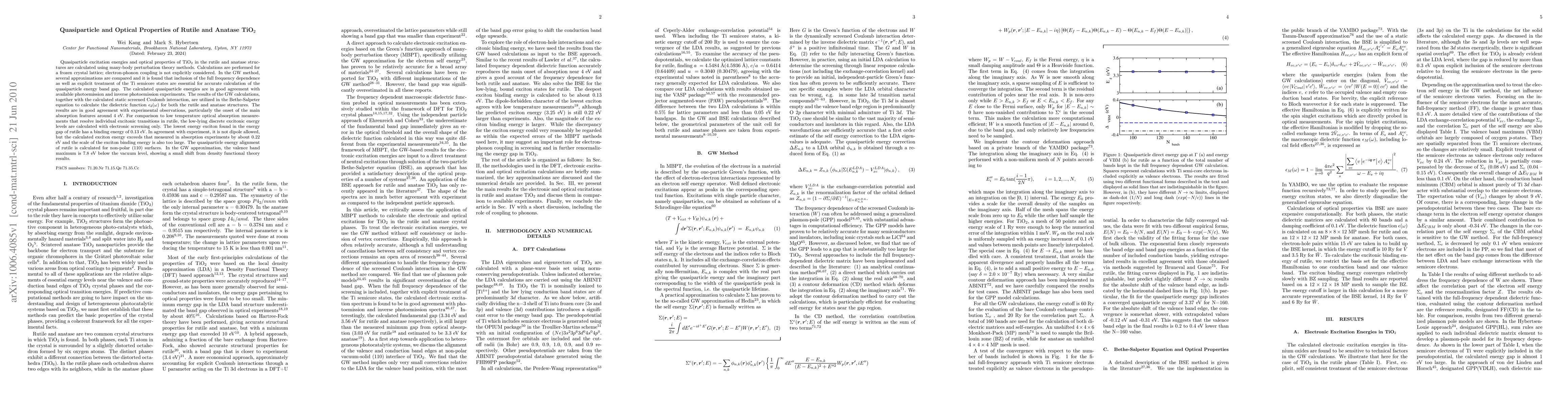 Researchers used many-body perturbation theory to calculate quasiparticle energies and optical properties of rutile and anatase TiO2, achieving good agreement with experimental data, while highlighting the importance of considering electron-phonon coupling for accurate calculations.