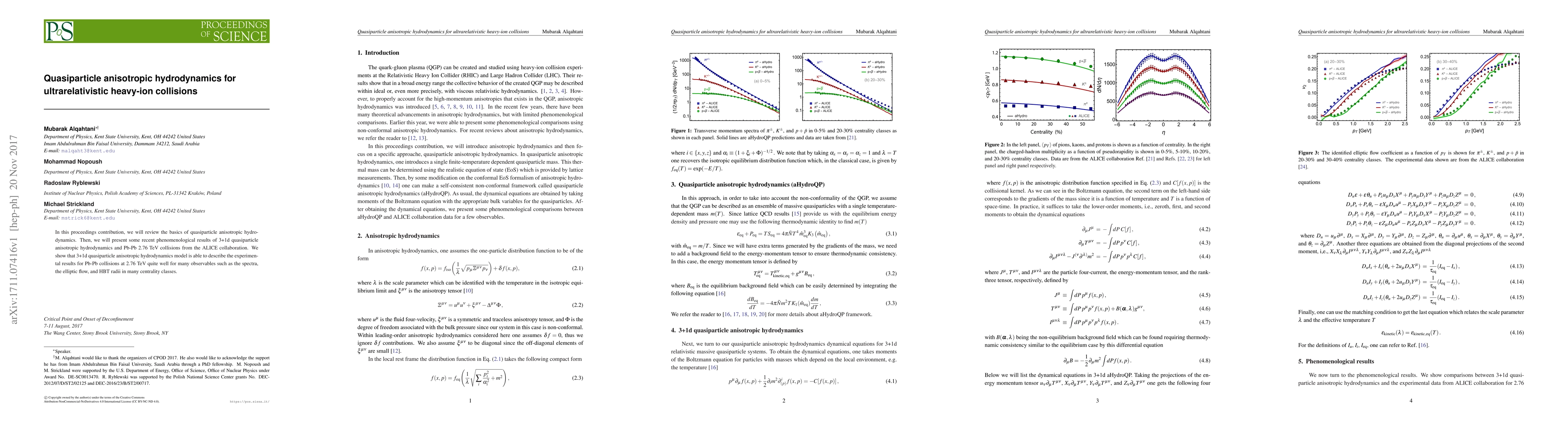 In this proceedings contribution, we will review the basics of quasiparticle anisotropic hydrodynamics. Then, we will present some recent phenomenological results of 3+1d quasiparticle anisotropic hydrodynamics and Pb-Pb $2.76$ TeV collisions from the ALICE collaboration. We show that 3+1d quasiparticle anisotropic hydrodynamics model is able to describe the experimental results for Pb-Pb collisions at $2.76$ TeV quite well for many observables such as the spectra, the elliptic flow, and HBT radii in many centrality classes.