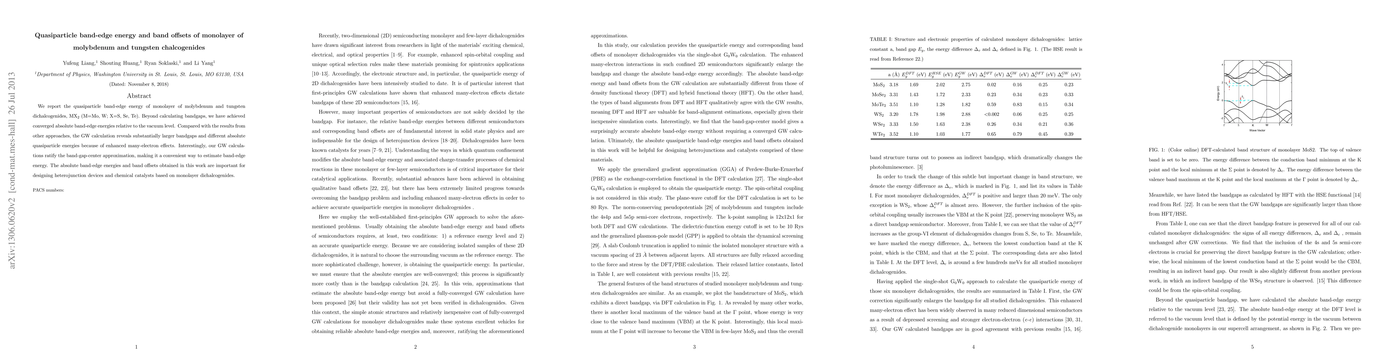 This paper reports quasiparticle band-edge energies and band offsets for monolayer molybdenum and tungsten chalcogenides using GW calculations, revealing larger bandgaps and different absolute band energies due to many-electron effects. The findings validate the band-gap-center approximation and are crucial for designing heterojunction devices and catalysts.