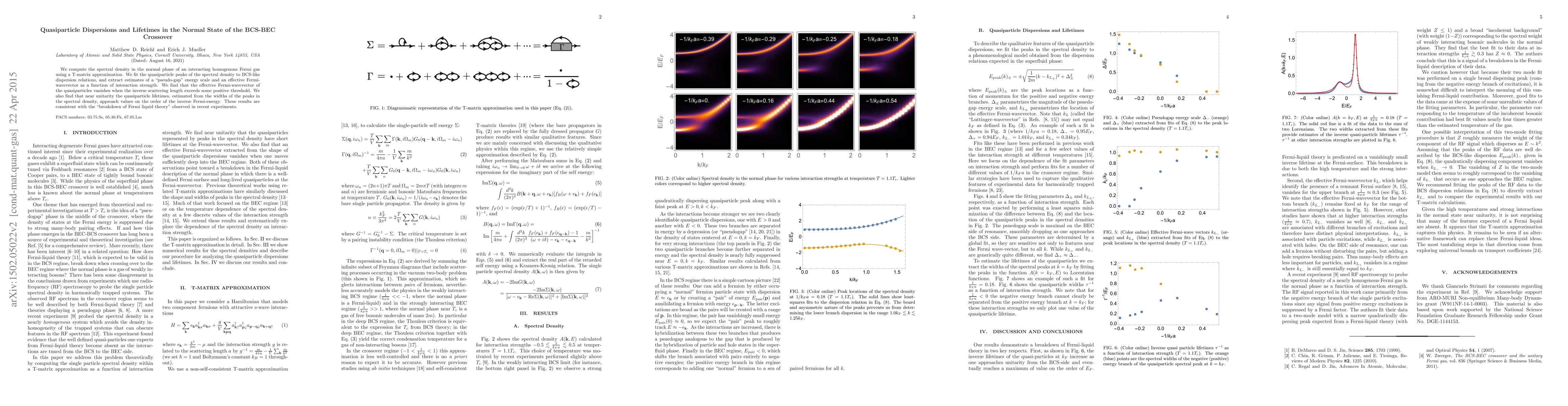 We compute the spectral density in the normal phase of an interacting homogenous Fermi gas using a T-matrix approximation. We fit the quasiparticle peaks of the spectral density to BCS-like dispersion relations, and extract estimates of a "pseudo-gap" energy scale and an effective Fermi-wavevector as a function of interaction strength. We find that the effective Fermi-wavevector of the quasiparticles vanishes when the inverse scattering length exceeds some positive threshold. We also find that near unitarity the quasiparticle lifetimes, estimated from the widths of the peaks in the spectral density, approach values on the order of the inverse Fermi-energy. These results are consistent with the "breakdown of Fermi liquid theory" observed in recent experiments.