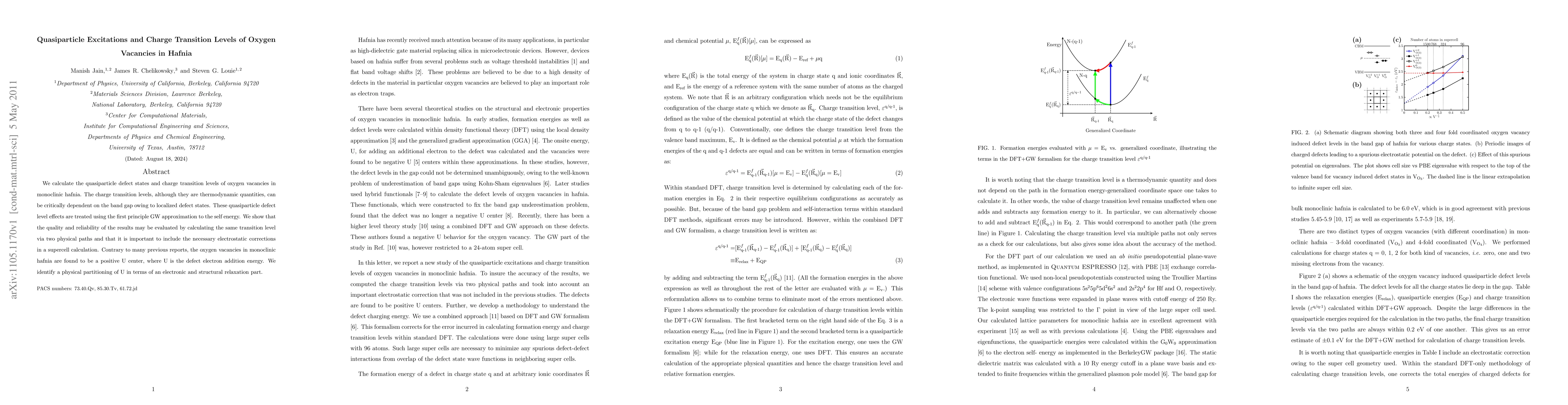 This study utilizes the GW approximation to calculate quasiparticle defect states and charge transition levels for oxygen vacancies in monoclinic hafnia, revealing that these vacancies behave as positive U centers contrary to previous reports. The study emphasizes the importance of including electrostatic corrections in supercell calculations for reliable results.