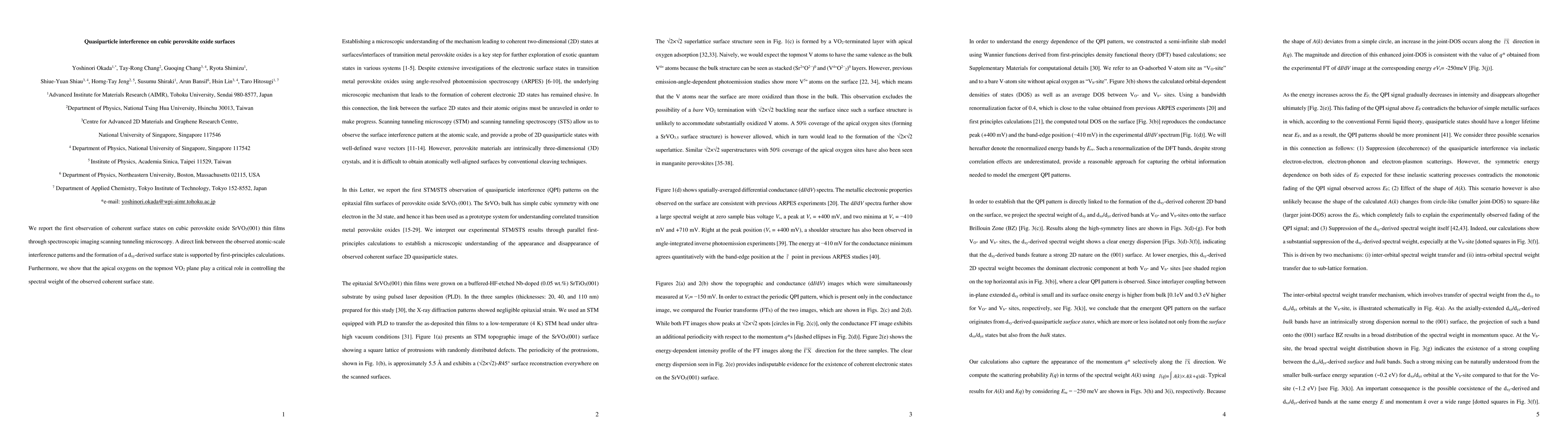 Researchers first visualize coherent surface states on SrVO3(001) thin films using spectroscopic imaging scanning tunneling microscopy. The findings, supported by calculations, reveal that apical oxygens on the topmost VO2 plane significantly influence these surface states.