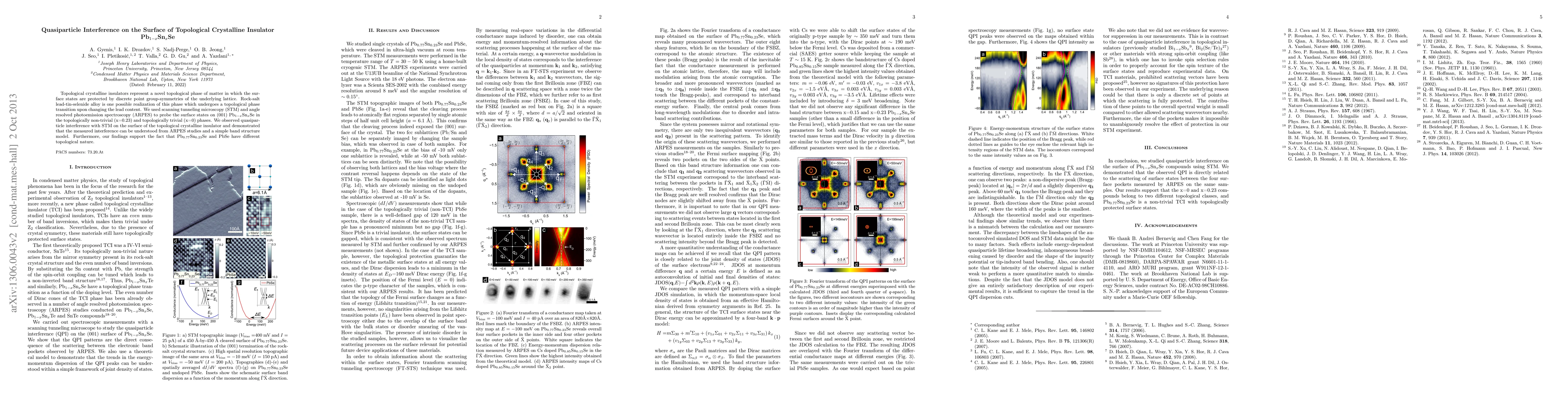 The research investigates quasiparticle interference on the surface of the topological crystalline insulator Pb$_{1-x}$Sn$_{x}$Se using STM and ARPES, revealing distinct topological properties between Pb$_{0.77}$Sn$_{0.23}$Se (non-trivial) and PbSe (trivial) phases. The observed interference patterns align with ARPES data and a band structure model.