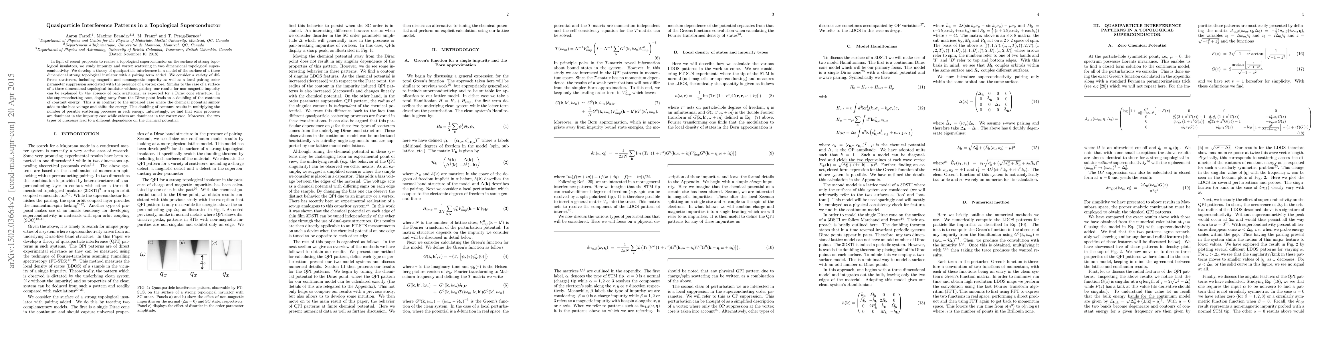 This paper develops a theoretical framework for quasiparticle interference patterns in a topological superconductor on the surface of a strong topological insulator, revealing distinct scattering behaviors for magnetic and nonmagnetic impurities and vortex cores, with implications for the energy contour doubling and differing chemical potential dependencies.