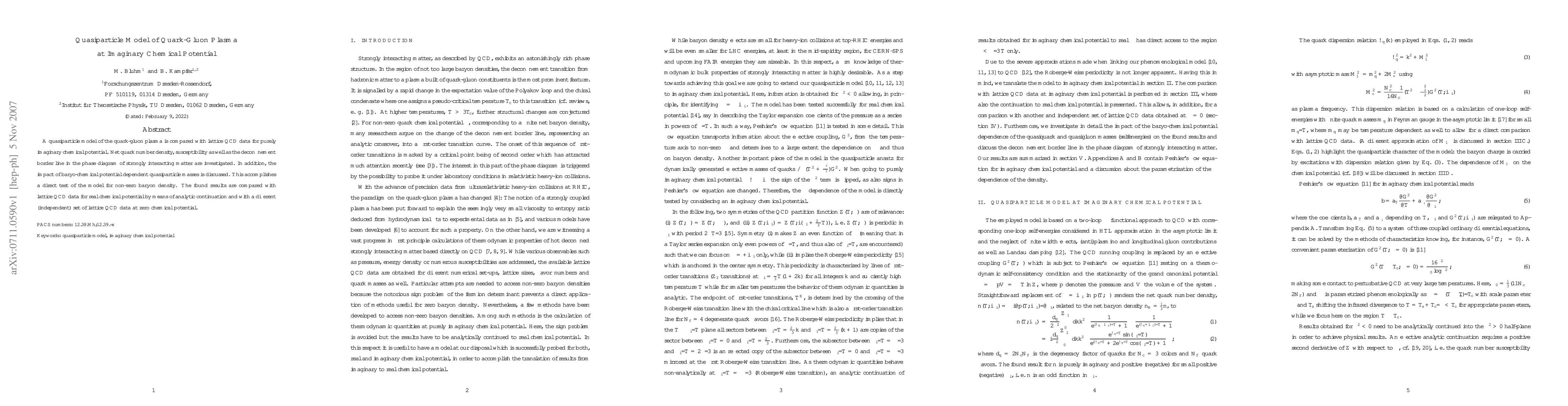 This paper compares a quasiparticle model of quark-gluon plasma with lattice QCD data using an imaginary chemical potential, investigating net quark number density, susceptibility, and the deconfinement phase boundary. It also examines the effects of baryo-chemical potential dependent quasiparticle masses and validates the model against lattice QCD data for real chemical potential via analytic continuation.