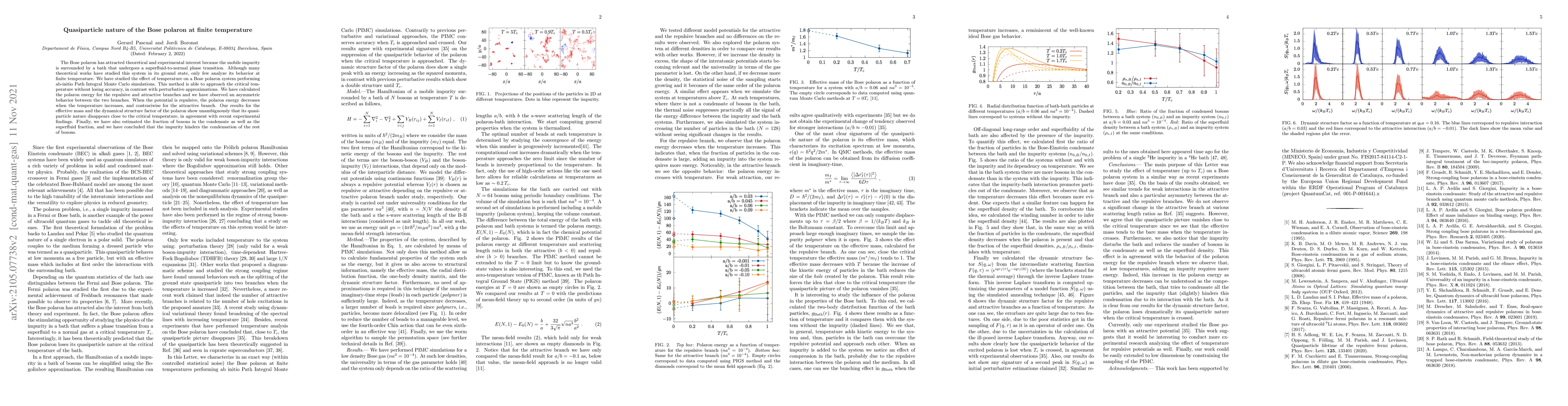 The Bose polaron has attracted theoretical and experimental interest because the mobile impurity is surrounded by a bath that undergoes a superfluid-to-normal phase transition. Although many theoretical works have studied this system in its ground state, only few analyze its behavior at finite temperature. We have studied the effect of temperature on a Bose polaron system performing ab-initio Path Integral Monte Carlo simulations. This method is able to approach the critical temperature without losing accuracy, in contrast with perturbative approximations. We have calculated the polaron energy for the repulsive and attractive branches and we have observed an asymmetric behavior between the two branches. When the potential is repulsive, the polaron energy decreases when the temperature increases, and contrariwise for the attractive branch. Our results for the effective mass and the dynamical structure factor of the polaron show unambiguously that its quasiparticle nature disappears close to the critical temperature, in agreement with recent experimental findings. Finally, we have also estimated the fraction of bosons in the condensate as well as the superfluid fraction, and we have concluded that the impurity hinders the condensation of the rest of bosons.