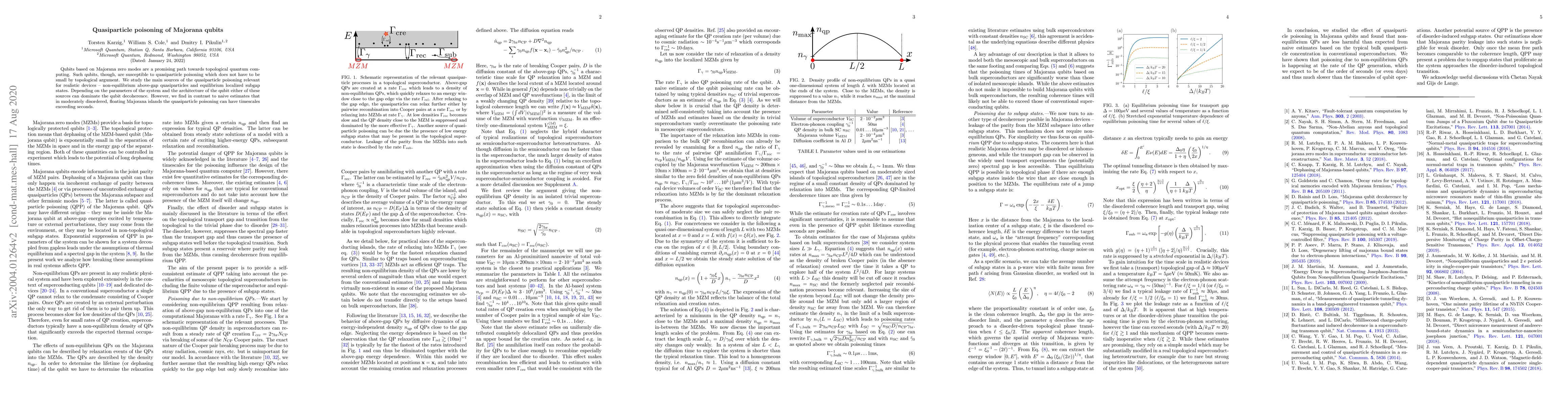 This paper investigates the quasiparticle poisoning of Majorana qubits, identifying non-equilibrium quasiparticles and localized subgap states as primary sources of decoherence. Contrary to naive estimates, it finds that in moderately disordered Majorana islands, poisoning timescales can exceed seconds.