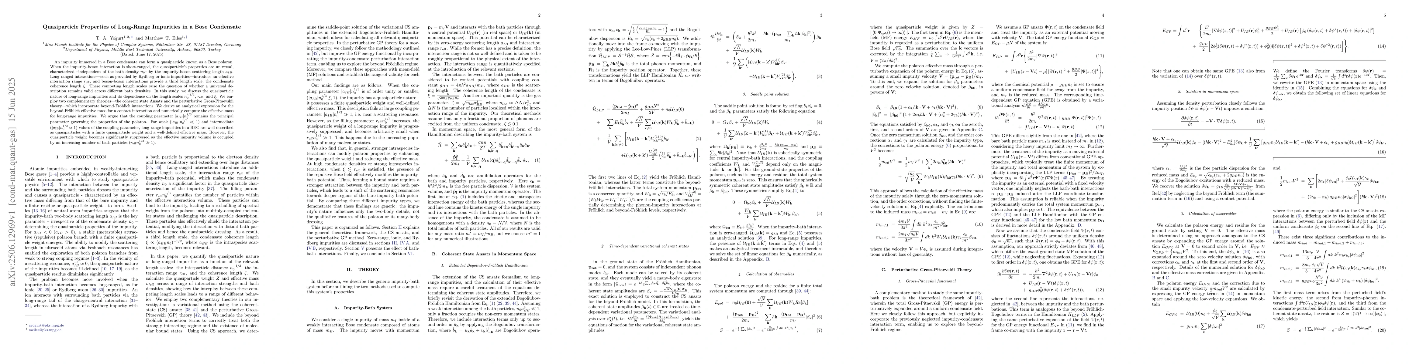 An impurity immersed in a Bose condensate can form a quasiparticle known as a Bose polaron. When the impurity-boson interaction is short-ranged, the quasiparticle's properties are universal, characterized - independent of the bath density $n_0$ - by the impurity-boson scattering length $a_{IB}$. Long-ranged interactions - such as provided by Rydberg or ionic impurities - introduce an effective interaction range $r_{\mathrm{eff}}$, and boson-boson interactions provide a third length scale, the condensate coherence length $\xi $. These competing length scales raise the question of whether a universal description remains valid across different bath densities. In this study, we discuss the quasiparticle nature of long-range impurities and its dependence on the length scales $ n_0^{-1/3} $, $ r_{\mathrm{eff}} $, and $ \xi $. We employ two complementary theories - the coherent state Ansatz and the perturbative Gross-Pitaevskii theory - which incorporate beyond-Fr\"ohlich interactions. We derive an analytical expression for the beyond-Fr\"ohlich effective mass for a contact interaction and numerically compute the effective mass for long-range impurities. We argue that the coupling parameter $ |a_{IB}| n_0^{1/3} $ remains the principal parameter governing the properties of the polaron. For weak $ (|a_{IB}| n_0^{1/3} \ll 1) $ and intermediate $ (|a_{IB}| n_0^{1/3} \simeq 1) $ values of the coupling parameter, long-range impurities in a BEC are well-described as quasiparticles with a finite quasiparticle weight and a well-defined effective mass. However, the quasiparticle weight becomes significantly suppressed as the effective impurity volume is occupied by an increasing number of bath particles $ (r_{\mathrm{eff}} n_0^{1/3} \gg 1) $.