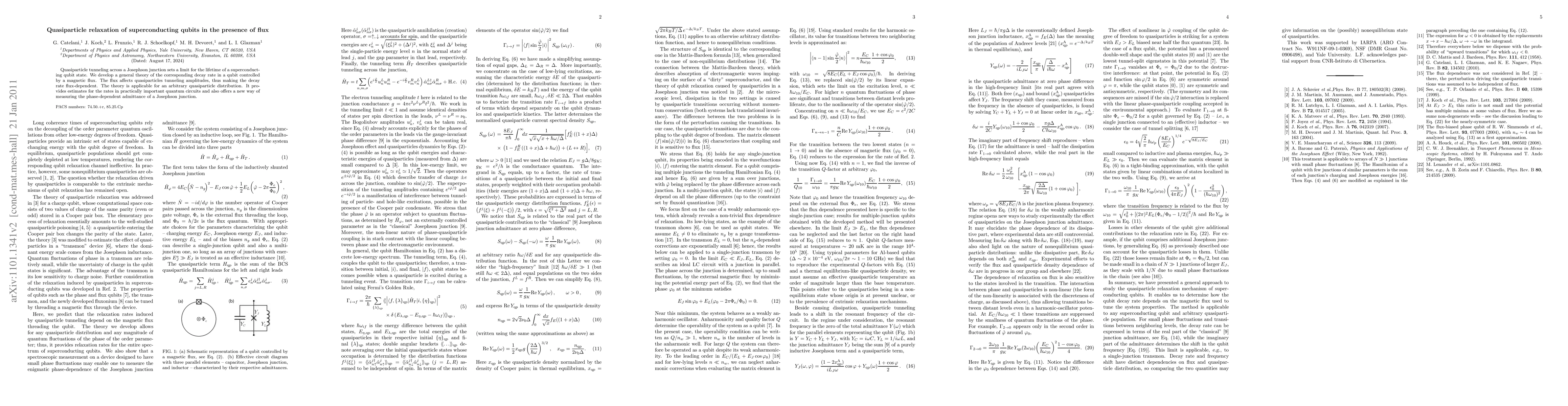 This paper develops a theoretical framework for understanding quasiparticle-induced decay rates in superconducting qubits, showing that magnetic flux influences these rates by altering quasiparticle tunneling amplitudes. The theory is broadly applicable and can estimate decay rates in quantum circuits and measure the phase-dependent admittance of Josephson junctions.