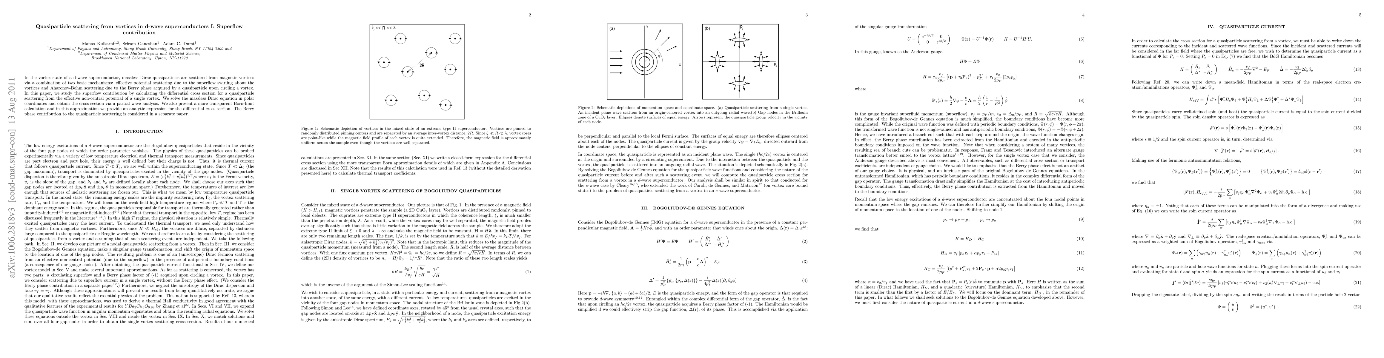 This research calculates the differential cross section for massless Dirac quasiparticles scattering from a single vortex in d-wave superconductors, focusing on the superflow contribution. It solves the massless Dirac equation in polar coordinates and provides an analytic expression for the cross section in the Born approximation.