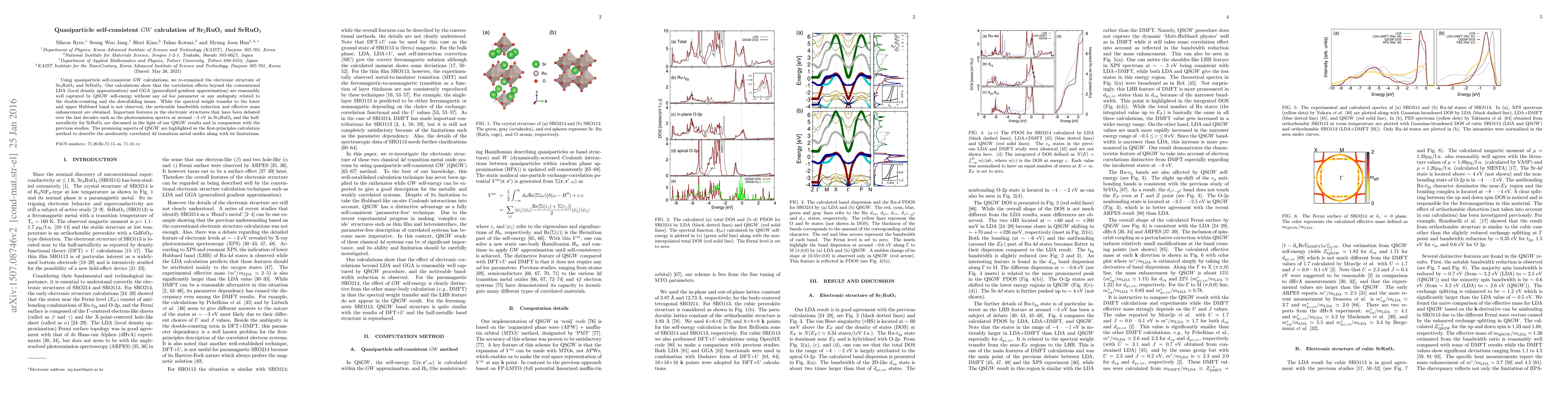 This paper employs quasiparticle self-consistent GW calculations to analyze the electronic structure of Sr$_2$RuO$_4$ and SrRuO$_3$, demonstrating that QS$GW$ effectively captures correlation effects beyond LDA and GGA without ambiguity. The study highlights bandwidth reduction and effective mass enhancement, and discusses the implications for debated features like photoemission spectra and half-metallicity.