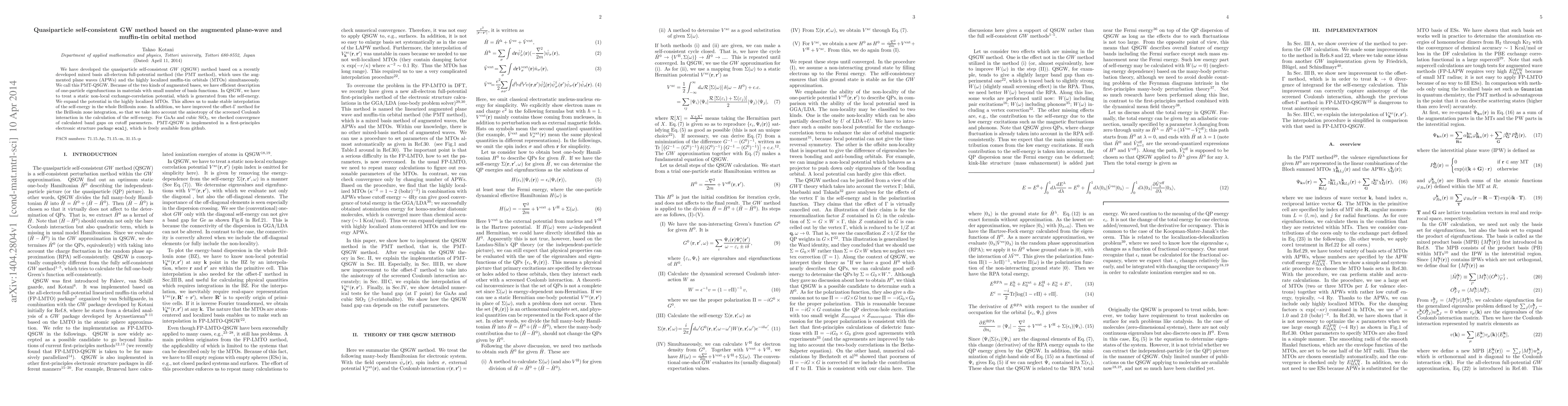 This paper introduces the quasiparticle self-consistent GW method (PMT-QSGW) based on a mixed basis method combining augmented plane waves and muffin-tin orbitals, enabling efficient description of one-particle eigenfunctions. The method improves Brillouin zone integration and is implemented in the ecalj package for calculating band gaps in materials like GaAs and cubic SiO2.