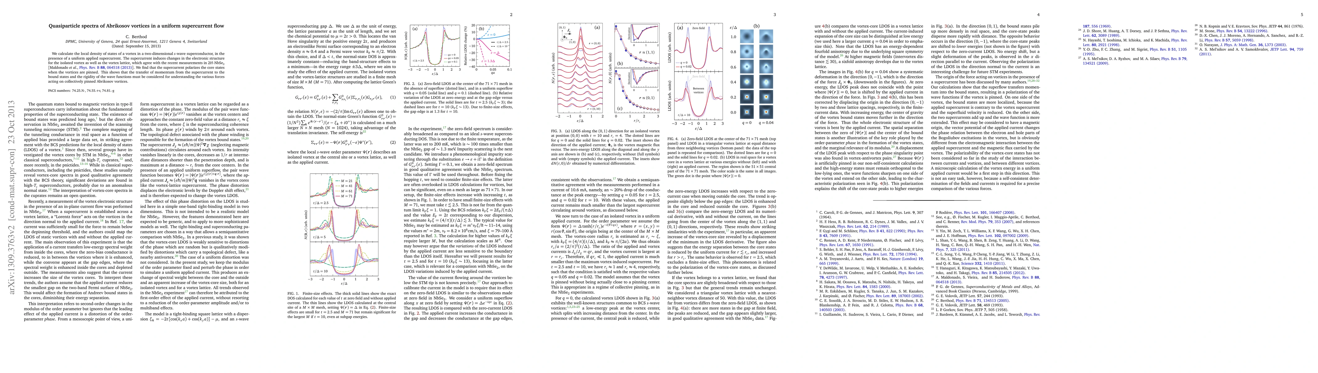 This paper investigates the local density of states of Abrikosov vortices in a two-dimensional s-wave superconductor under a uniform supercurrent, revealing changes in electronic structure and vortex lattice polarization. The findings align with recent experimental observations in 2H-NbSe2 and highlight the importance of momentum transfer and wave function rigidity in understanding vortex dynamics.