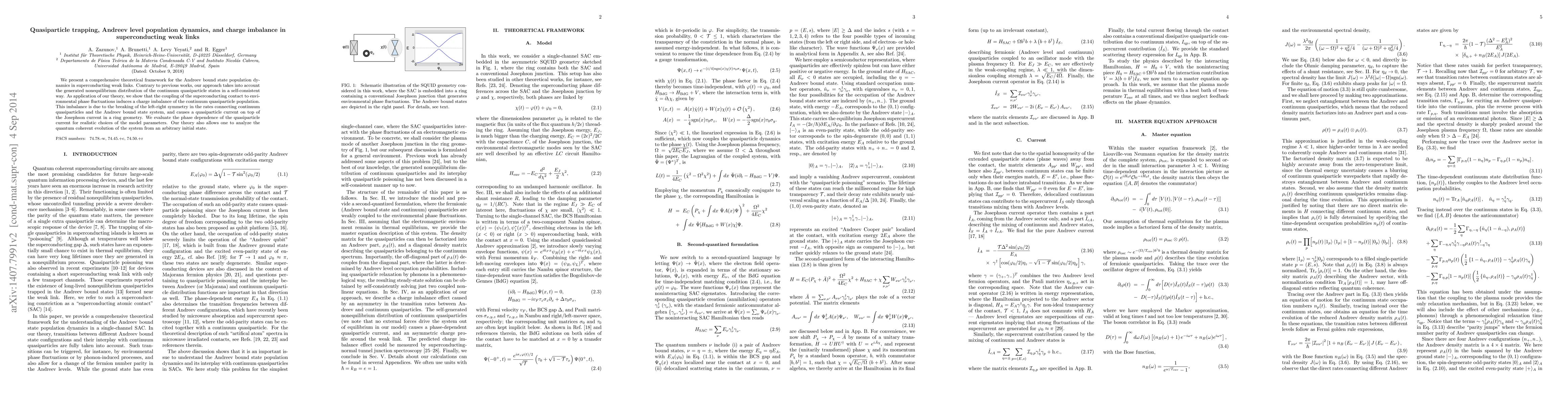 This paper develops a theoretical framework for the dynamics of Andreev bound states in superconducting weak links, accounting for quasiparticle trapping and nonequilibrium distributions. It reveals that environmental phase fluctuations can induce a charge imbalance, leading to a quasiparticle current in ring geometries, and provides a method to analyze the quantum coherent evolution of the system.