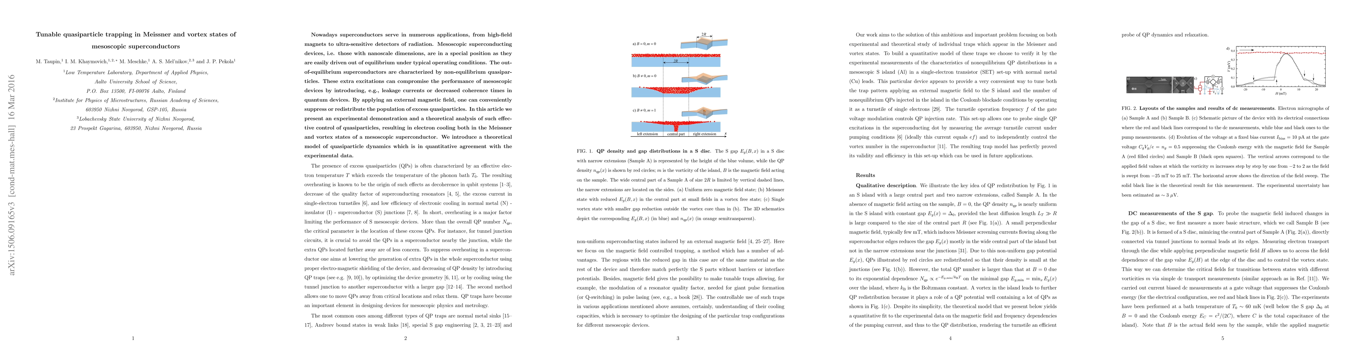 This paper investigates the trapping of non-equilibrium quasiparticles in mesoscopic superconductors under magnetic fields, demonstrating effective electron cooling in both Meissner and vortex states through experimental and theoretical analysis. A new theoretical model accurately describes the quasiparticle dynamics observed.