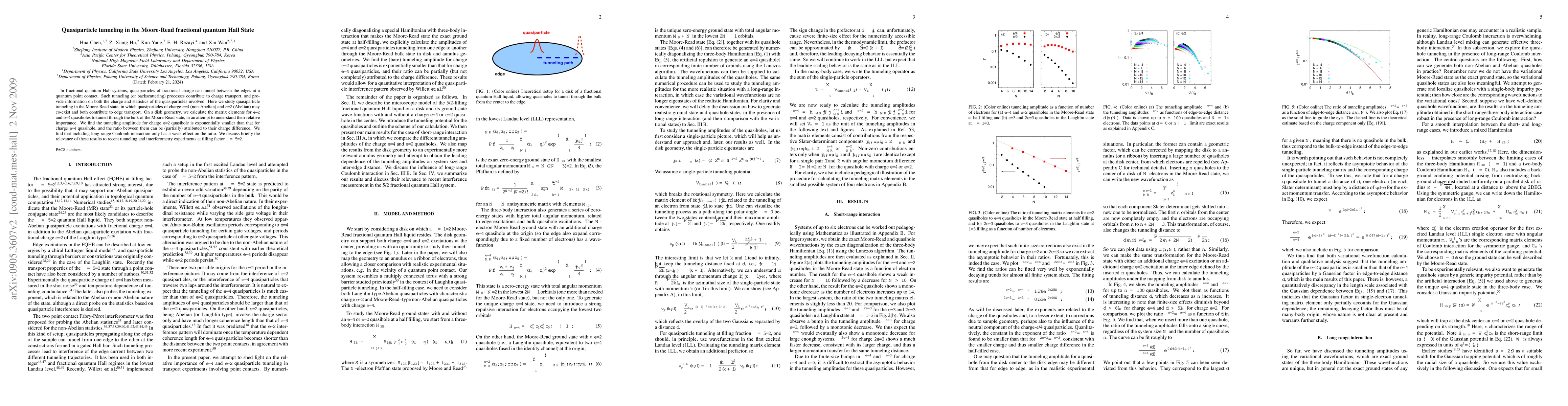 This paper investigates quasiparticle tunneling in the Moore-Read fractional quantum Hall state, finding that tunneling amplitudes for charge e/4 quasiholes are significantly larger than for charge e/2 quasiholes, with the ratio influenced by their charge difference rather than long-range Coulomb interactions. These findings provide insights into charge transport mechanisms in fractional quantum Hall systems.