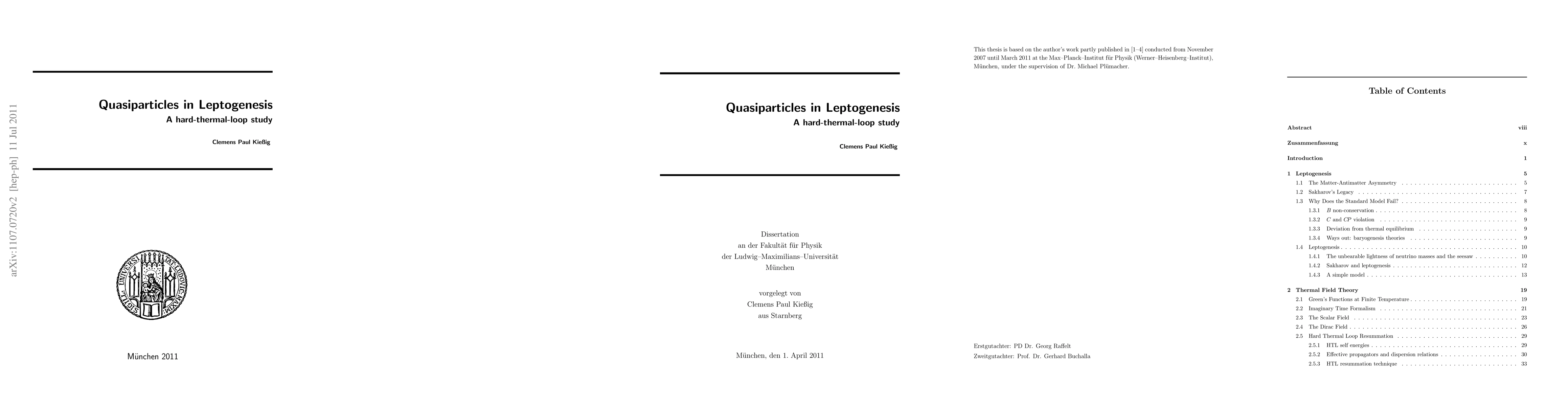 We analyse the effects of thermal quasiparticles in leptogenesis using hard-thermal-loop-resummed propagators in the imaginary time formalism of thermal field theory. We perform our analysis in a leptogenesis toy model with three right-handed heavy neutrinos $N_1$, $N_2$ and $N_3$. We consider decays and inverse decays and work in the hierarchical limit where $M_2 \gg M_1$. We neglect flavour effects and assume that the temperatures are much smaller than $M_2$ and $M_3$. We pay special attention to the influence of fermionic quasiparticles. We allow for the leptons to be either decoupled from each other, except for the interactions with neutrinos, or to be in chemical equilibrium by some strong interaction, for example via gauge bosons. In two additional cases, we approximate the full hard-thermal-loop lepton propagators with zero-temperature propagators, where we replace the zero-temperature mass by the thermal mass of the leptons $m_\ell(T)$ in one case and the asymptotic mass of the positive-helicity mode $\sqrt{2} \, m_\ell(T)$ in the other case. We calculate all relevant decay rates and $\CP$-asymmetries and solve the corresponding Boltzmann equations we derived. We compare the final lepton asymmetry of the four thermal cases and the vacuum case for three different initial neutrino abundances; zero, thermal and dominant abundance. The final asymmetries of the thermal cases differ considerably from the vacuum case and from each other in the weak washout regime for zero abundance and in the intermediate regime for dominant abundance. In the strong washout regime, where no influences from thermal corrections are commonly expected, the final lepton asymmetry can be enhanced by a factor of two by hiding part of the lepton asymmetry in the quasi-sterile minus-mode in the case of strongly interacting lepton modes.