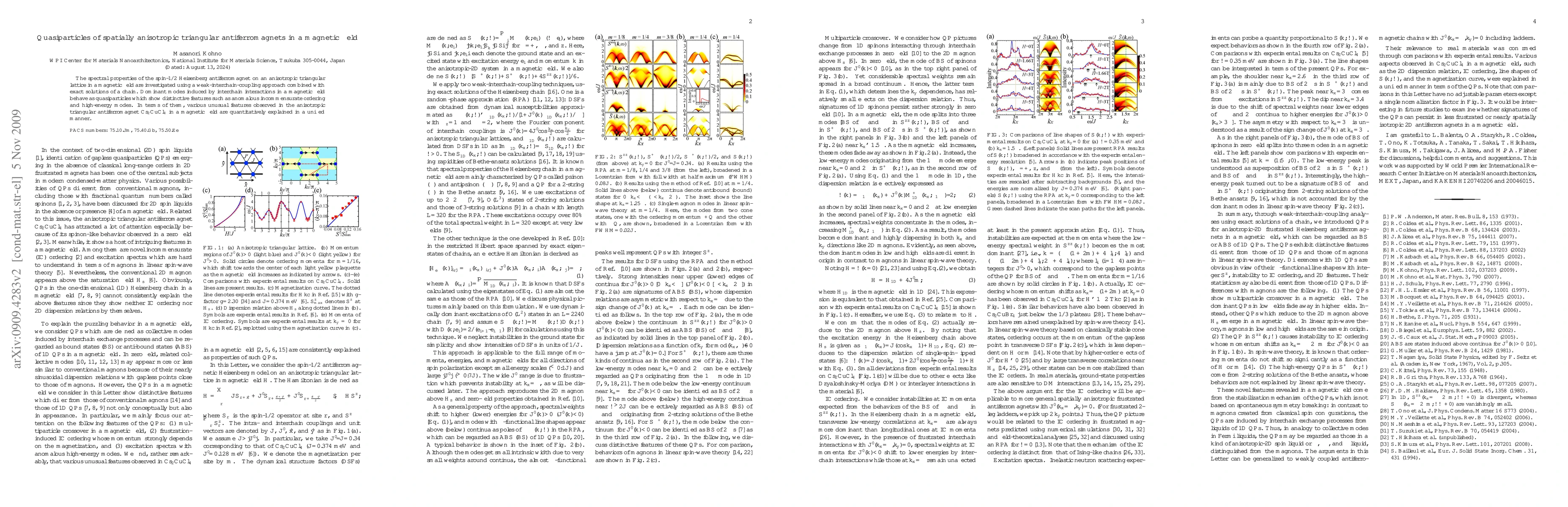This paper investigates the spectral properties of spin-1/2 Heisenberg antiferromagnets on anisotropic triangular lattices under a magnetic field, revealing quasiparticles with anomalous incommensurate ordering and high-energy modes, which explain unusual phenomena observed in Cs_2CuCl_4.
