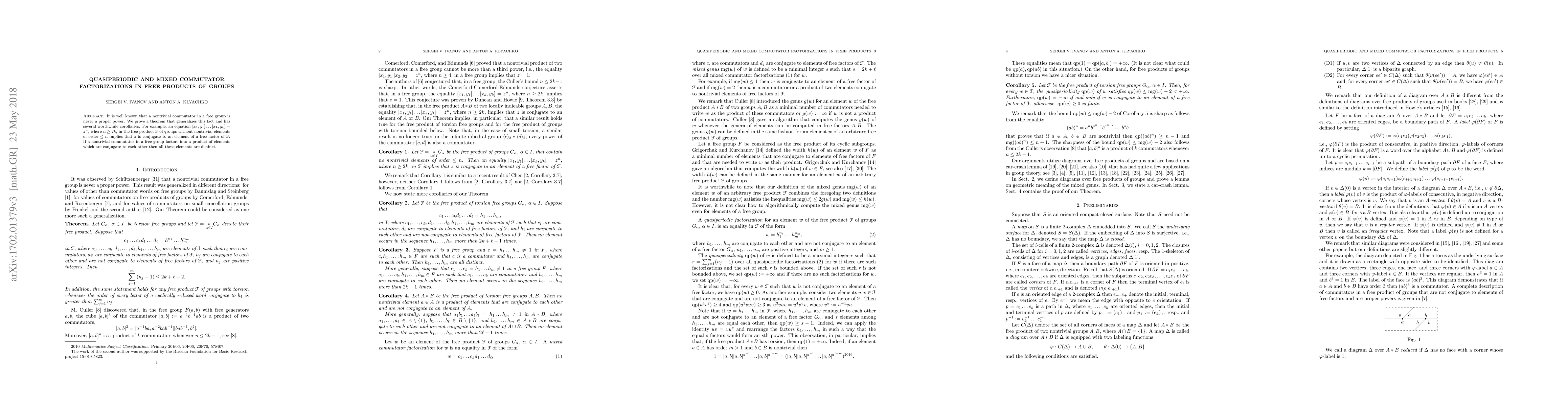 It is well known that a nontrivial commutator in a free group is never a proper power. We prove a theorem that generalizes this fact and has several worthwhile corollaries. For example, an equation $[ x_1, y_1] \ldots [ x_k, y_k] = z^n$, where $n \ge 2k$, in a free product $\mathcal{F}$ of groups without nontrivial elements of order $\le n$ implies that $z$ is conjugate to an element of a free factor of $\mathcal{F}$. If a nontrivial commutator in a free group factors into a product of elements which are conjugate to each other then all these elements are distinct.
