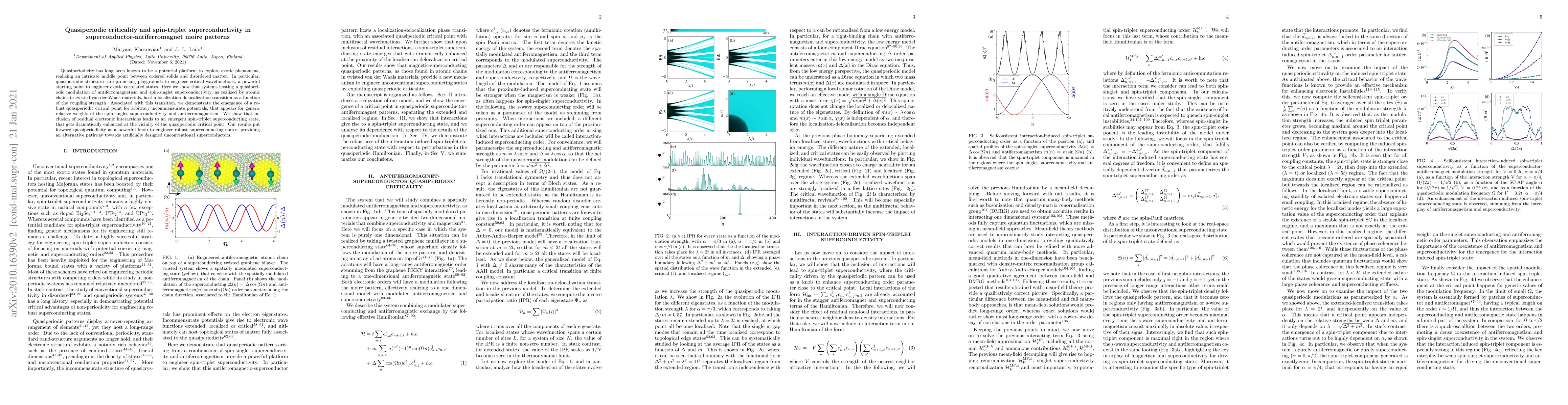 Quasiperiodicity has long been known to be a potential platform to explore exotic phenomena, realizing an intricate middle point between ordered solids and disordered matter. In particular, quasiperiodic structures are promising playgrounds to engineer critical wavefunctions, a powerful starting point to engineer exotic correlated states. Here we show that systems hosting a quasiperiodic modulation of antiferromagnetism and spin-singlet superconductivity, as realized by atomic chains in twisted van der Waals materials, host a localization-delocalization transition as a function of the coupling strength. Associated with this transition, we demonstrate the emergence of a robust quasiperiodic critical point for arbitrary incommensurate potentials, that appears for generic relative weights of the spin-singlet superconductivity and antiferromagnetism. We show that the inclusion of residual electronic interactions leads to an emergent spin-triplet superconducting state, that gets dramatically enhanced at the vicinity of the quasiperiodic critical point. Our results put forward quasiperiodicity as a powerful knob to engineer robust superconducting states, providing an alternative pathway towards artificially designed unconventional superconductors.