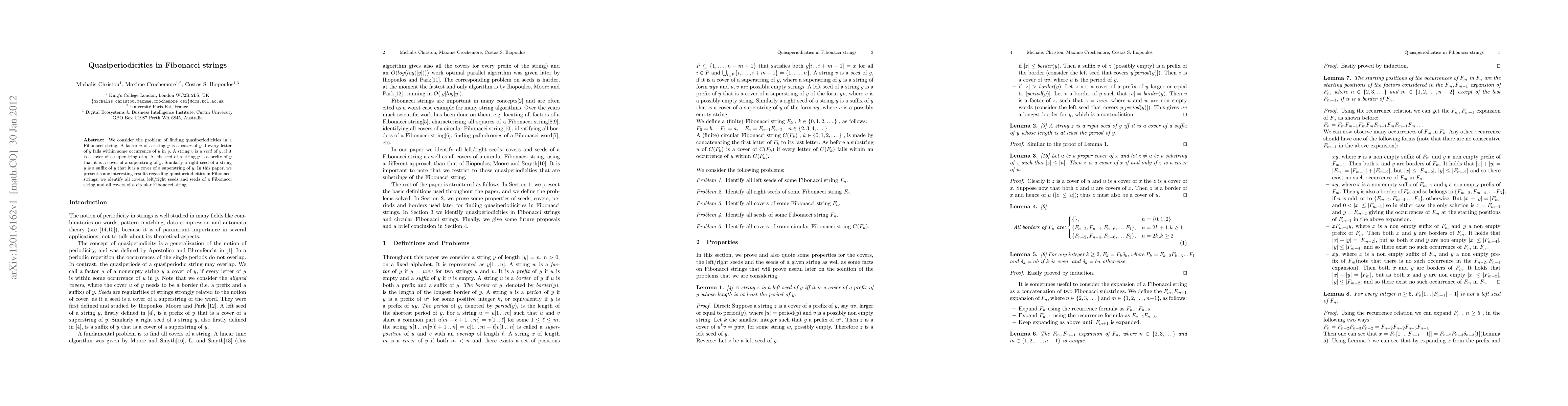 We consider the problem of finding quasiperiodicities in a Fibonacci string. A factor u of a string y is a cover of y if every letter of y falls within some occurrence of u in y. A string v is a seed of y, if it is a cover of a superstring of y. A left seed of a string y is a prefix of y that it is a cover of a superstring of y. Similarly a right seed of a string y is a suffix of y that it is a cover of a superstring of y. In this paper, we present some interesting results regarding quasiperiodicities in Fibonacci strings, we identify all covers, left/right seeds and seeds of a Fibonacci string and all covers of a circular Fibonacci string.