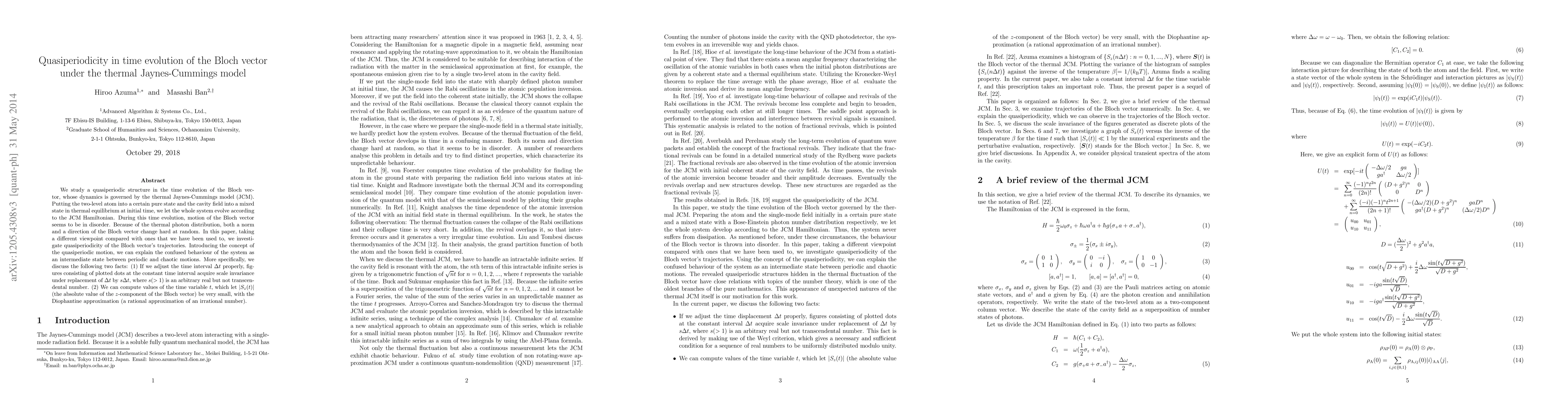 Research finds a quasiperiodic pattern in the evolution of the Bloch vector in the thermal Jaynes-Cummings model, revealing an intermediate state between periodic and chaotic motions.
