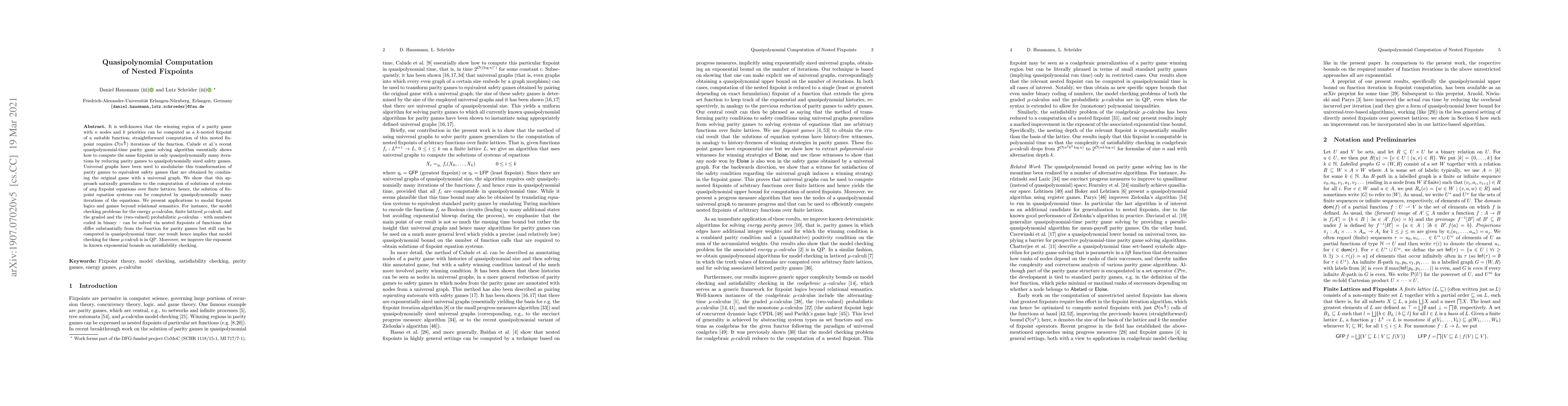 This paper proposes a quasipolynomial-time algorithm for computing nested fixpoints, significantly improving upon the traditional $\mathcal{O}(n^{\frac{k}{2}})$ iteration method. The authors demonstrate this approach through parity games, extending it to solve fixpoint equation systems in various logics and model checking problems, thereby showing that these tasks lie within the quasipolynomial complexity class QP.