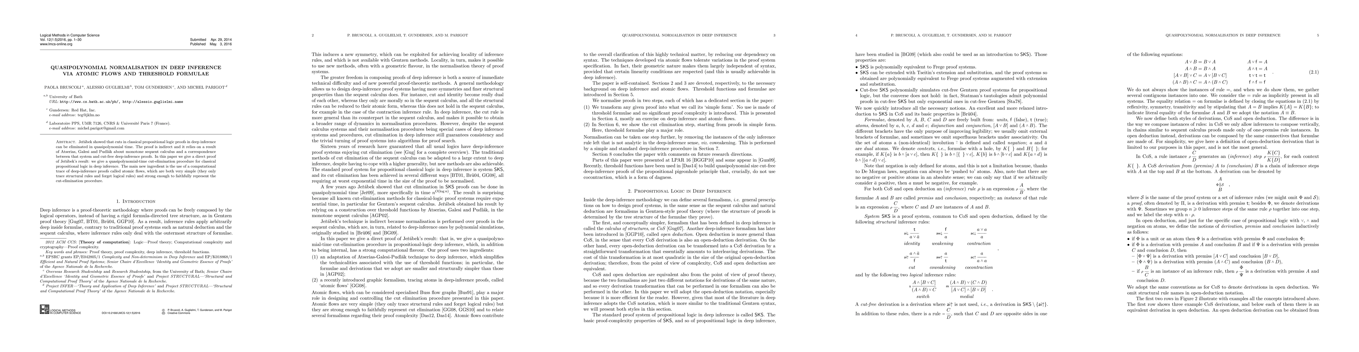 Researchers provide a direct proof that cuts can be eliminated in classical propositional logic proofs using a new computational trace called atomic flows, leading to a quasipolynomial-time cut-elimination procedure for deep inference.