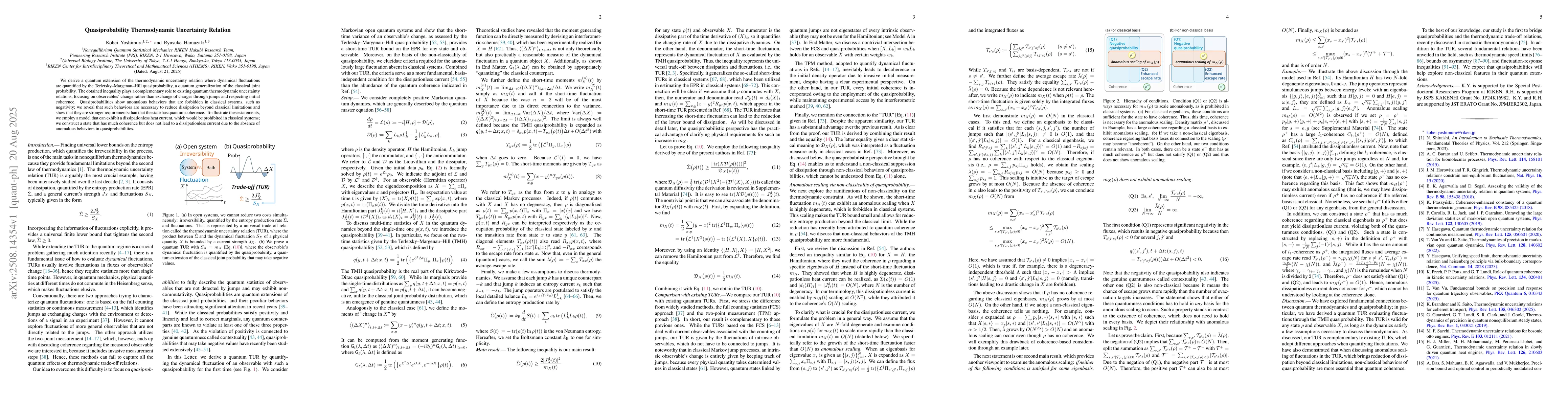The paper introduces a quantum extension of the thermodynamic uncertainty relation using the TMH quasiprobability, revealing the necessity of anomalous quasiprobability behaviors for enhanced dissipation reduction beyond classical limits.