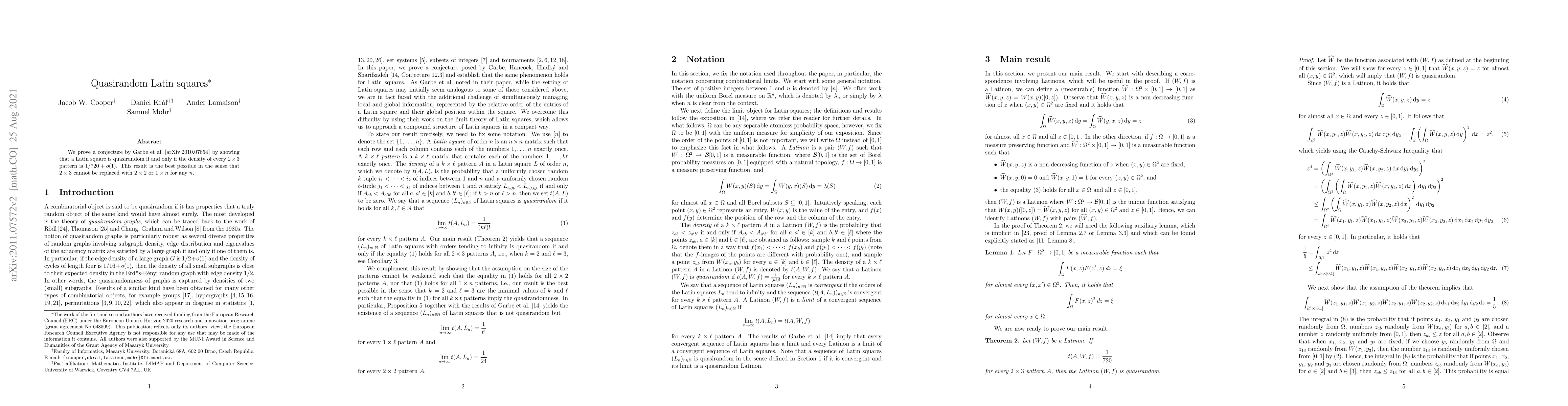 Researchers prove a conjecture that a Latin square is quasirandom if and only if a specific 2x3 pattern density threshold is met, setting a new limit on the size of such patterns.