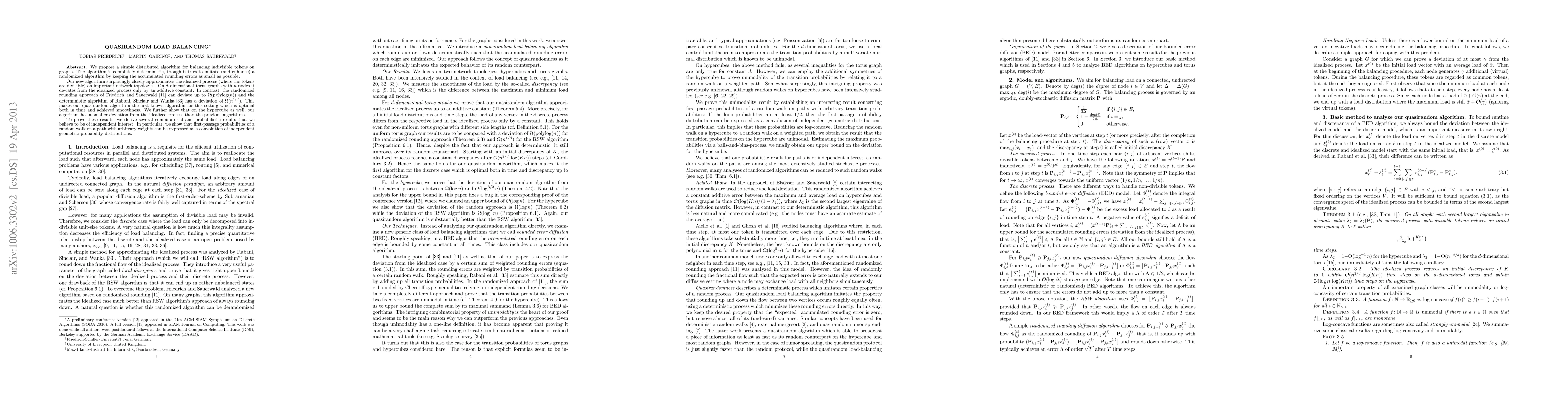 We propose a simple distributed algorithm for balancing indivisible tokens on graphs. The algorithm is completely deterministic, though it tries to imitate (and enhance) a random algorithm by keeping the accumulated rounding errors as small as possible. Our new algorithm surprisingly closely approximates the idealized process (where the tokens are divisible) on important network topologies. On d-dimensional torus graphs with n nodes it deviates from the idealized process only by an additive constant. In contrast to that, the randomized rounding approach of Friedrich and Sauerwald (2009) can deviate up to Omega(polylog(n)) and the deterministic algorithm of Rabani, Sinclair and Wanka (1998) has a deviation of Omega(n^{1/d}). This makes our quasirandom algorithm the first known algorithm for this setting which is optimal both in time and achieved smoothness. We further show that also on the hypercube our algorithm has a smaller deviation from the idealized process than the previous algorithms.