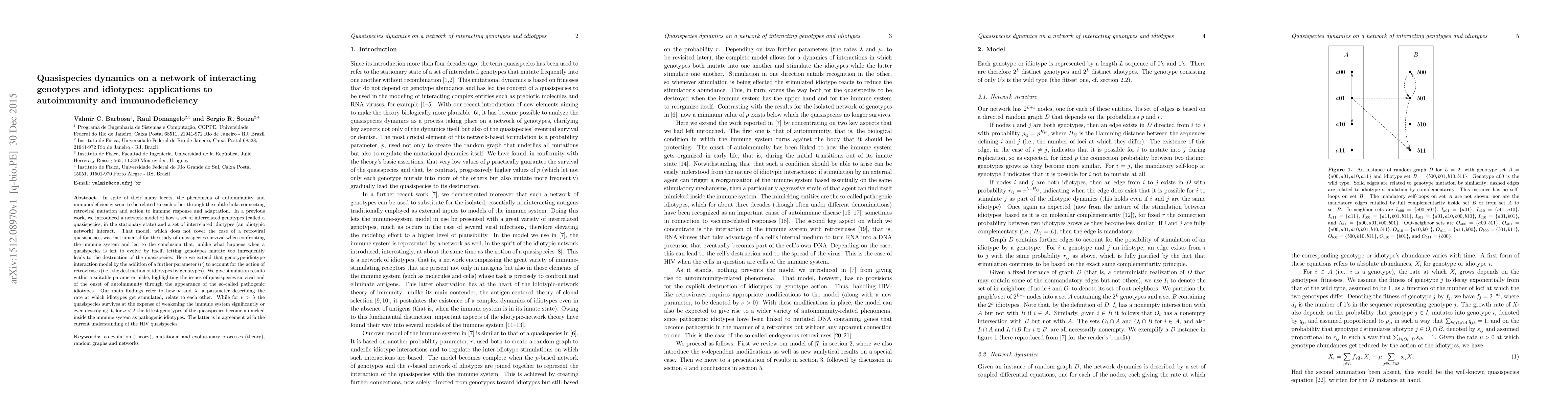 This paper extends a network model of genotype-idiotype interactions to include retroviral dynamics, focusing on quasispecies survival and autoimmunity. It finds that when the rate of idiotype destruction by genotypes ($\nu$) exceeds the rate of idiotype stimulation ($\lambda$), the quasispecies survives but weakens or destroys the immune system, while the reverse scenario leads to the emergence of pathogenic idiotypes mimicking fittest genotypes, aligning with HIV quasispecies behavior.