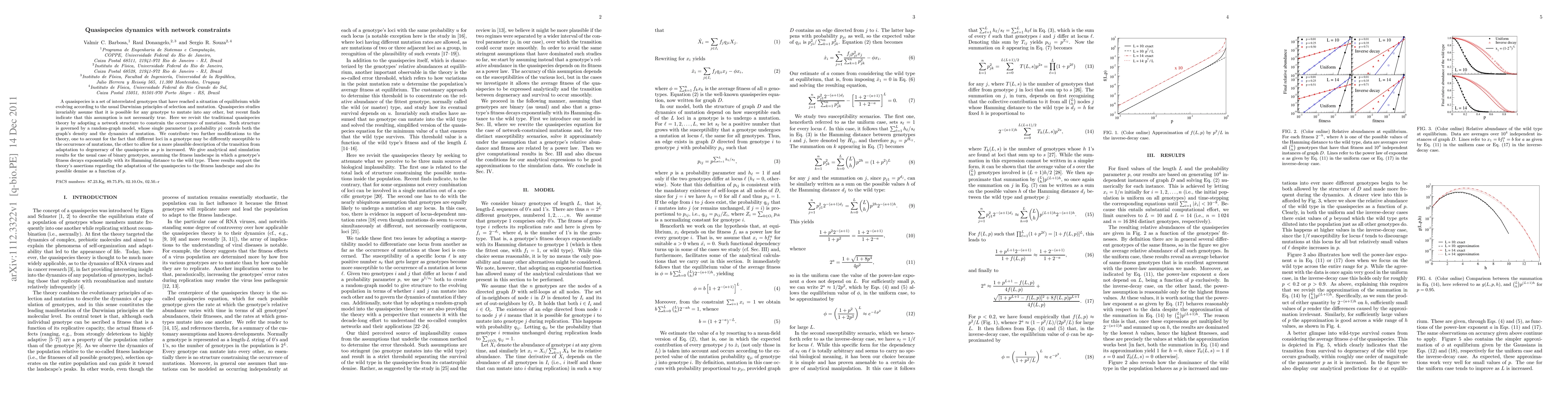 This paper revisits quasispecies theory by incorporating network constraints to reflect realistic mutation dynamics, governed by a random-graph model. It introduces modifications to account for locus-specific mutation susceptibility and the transition from adaptation to degeneracy, providing analytical and simulation results for binary genotypes.