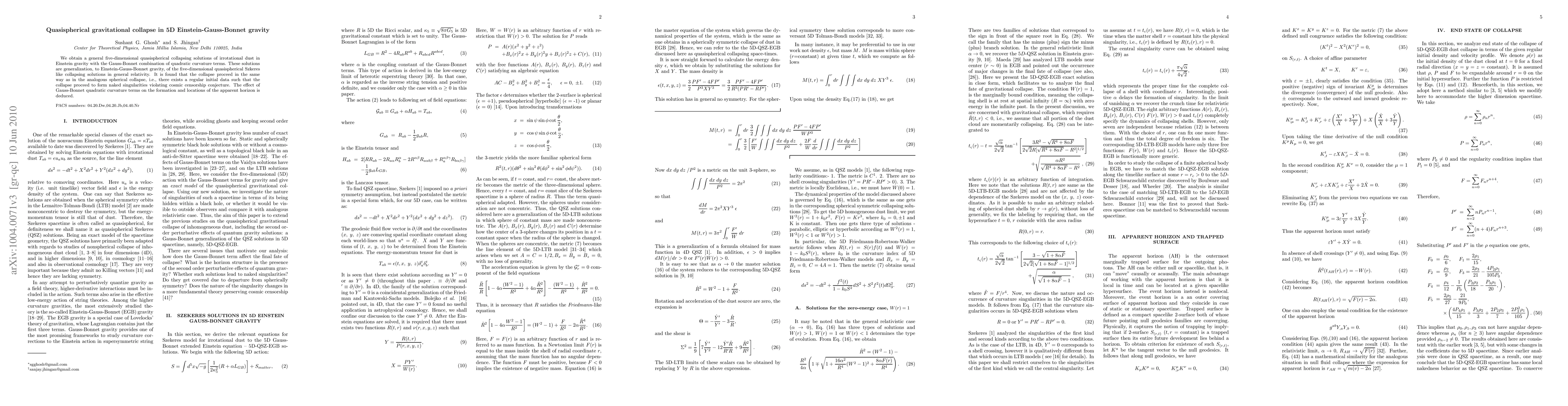 This paper presents 5D quasispherical solutions for irrotational dust collapse in Einstein-Gauss-Bonnet gravity, revealing that the collapse can lead to naked singularities, violating the cosmic censorship conjecture, while analyzing the impact of Gauss-Bonnet terms on apparent horizons.