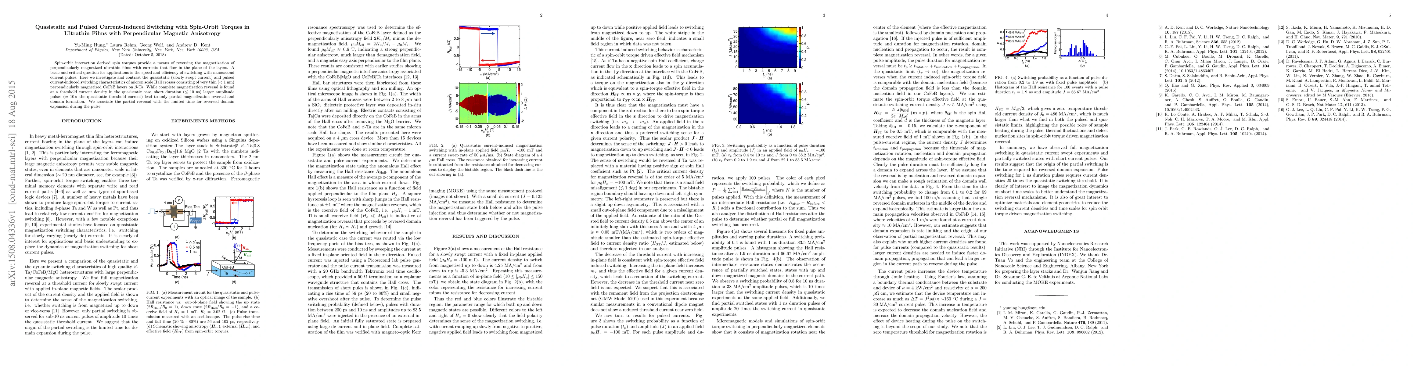 The paper presents an in-depth analysis of current-induced switching in perpendicularly magnetized ultrathin films, highlighting the contrast between quasistatic and pulsed current behaviors.