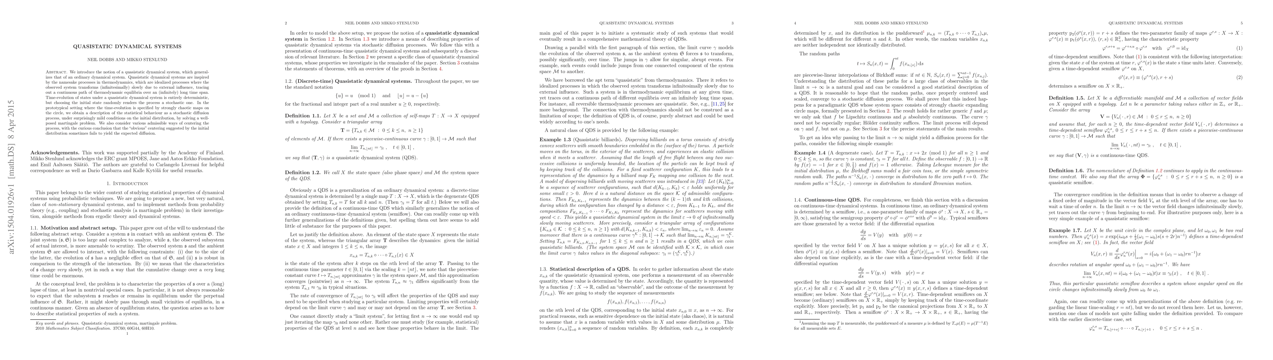 Researchers introduce quasistatic dynamical systems, which study slow transformations inspired by thermodynamic processes, and find that their statistical behavior can be described as a stochastic diffusion process under certain conditions.