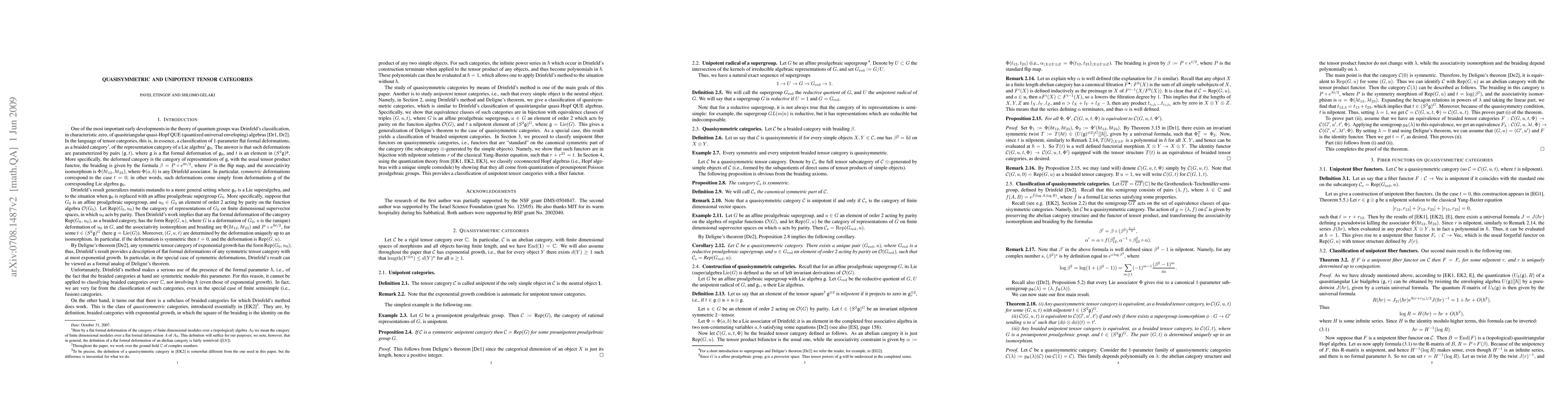 We classify braided tensor categories over C of exponential growth which are quasisymmetric, i.e., the squared braiding is the identity on the product of any two simple objects. This generalizes the classification results of Deligne on symmetric categories of exponential growth, and of Drinfeld on quasitriangular quasi-Hopf algebras. In particular, we classify braided categories of exponential growth which are unipotent, i.e., those whose only simple object is the unit object. We also classify fiber functors on such categories. Finally, using the Etingof-Kazhdan quantization theory of Poisson algebraic groups, we give a classification of coconnected Hopf algebras, i.e. of unipotent categories of exponential growth with a fiber functor.