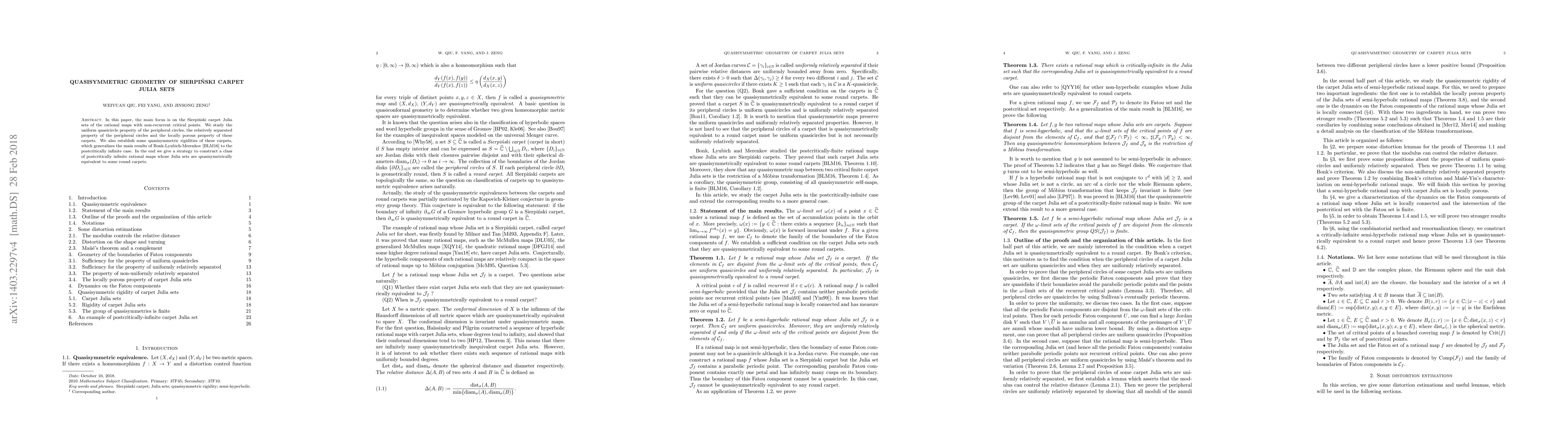 The paper employs a combination of complex dynamics theory, quasiconformal geometry, and renormalization techniques to analyze Sierpinski carpet Julia sets of rational maps with non-recurrent critical points.