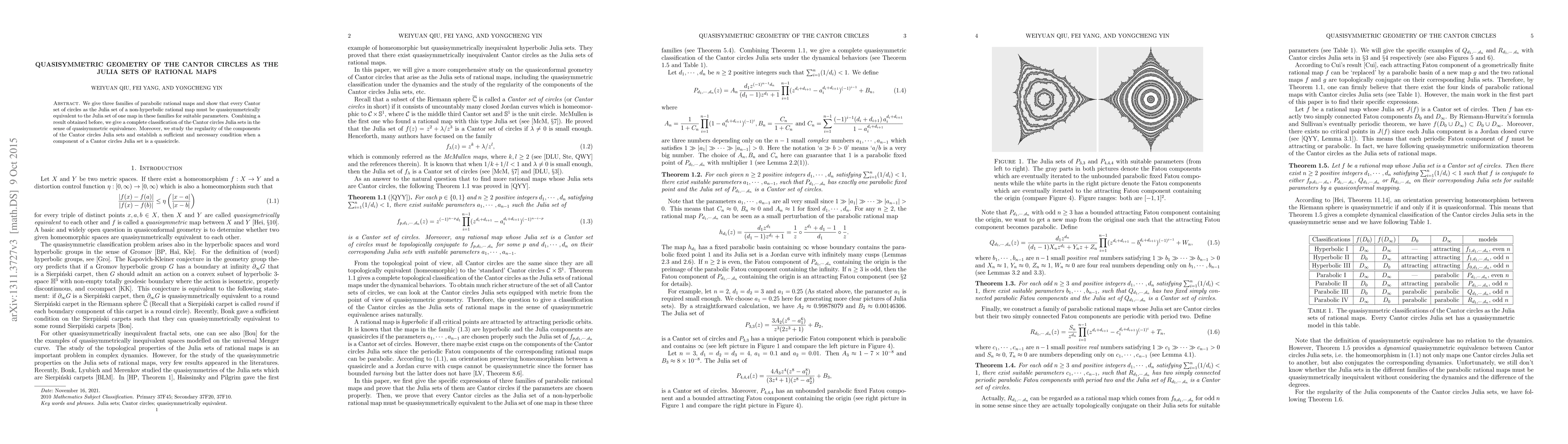 This paper identifies three families of parabolic rational maps and demonstrates that any Cantor set of circles serving as a Julia set for a non-hyperbolic rational map is quasisymmetrically equivalent to the Julia set of one map in these families under specific parameters. It also classifies Cantor circles Julia sets in terms of quasisymmetric equivalence and explores the regularity conditions for components to be quasicircles.